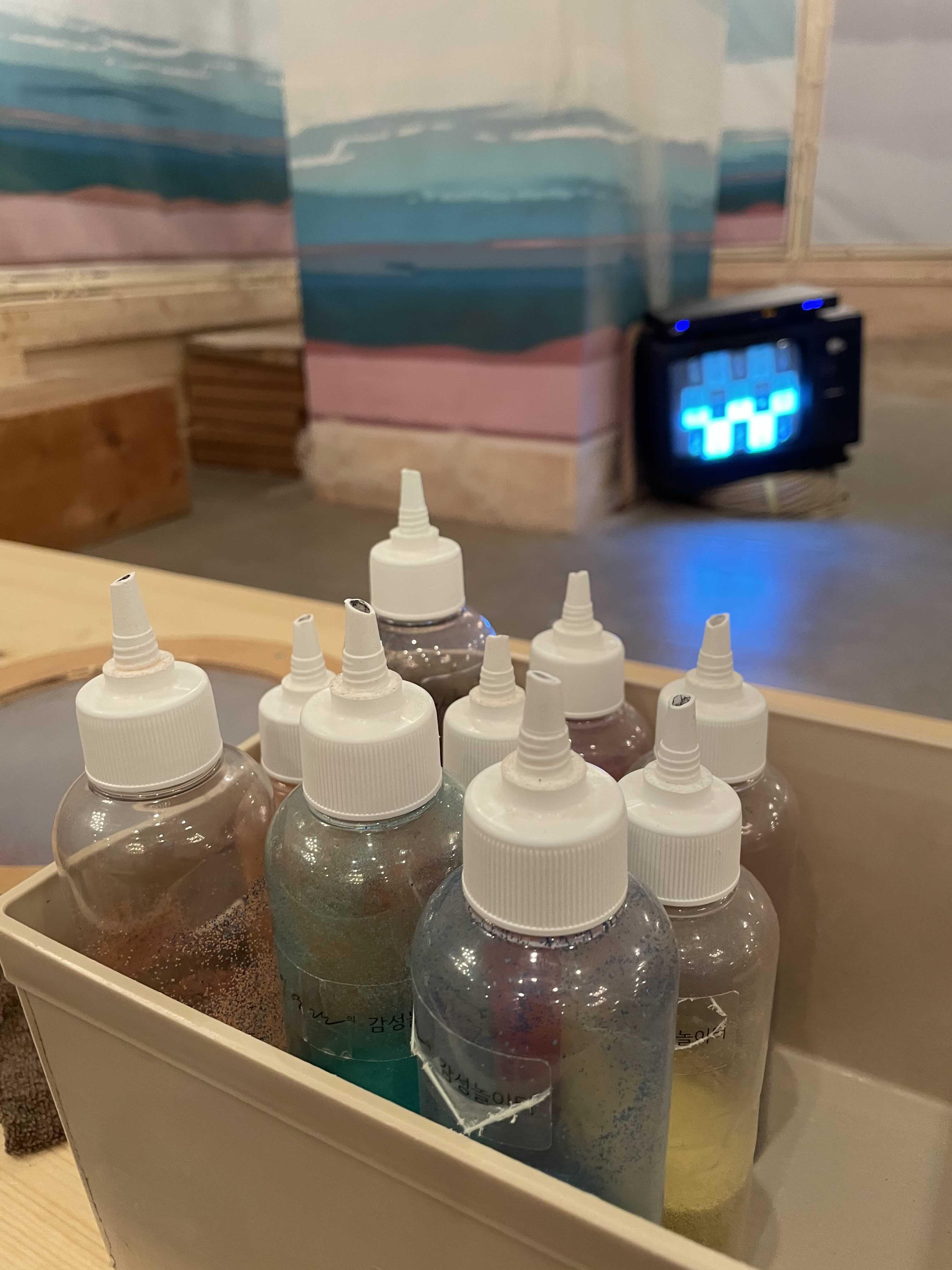 각 일병씩 모래를 담을 병을 나눠주셔요.