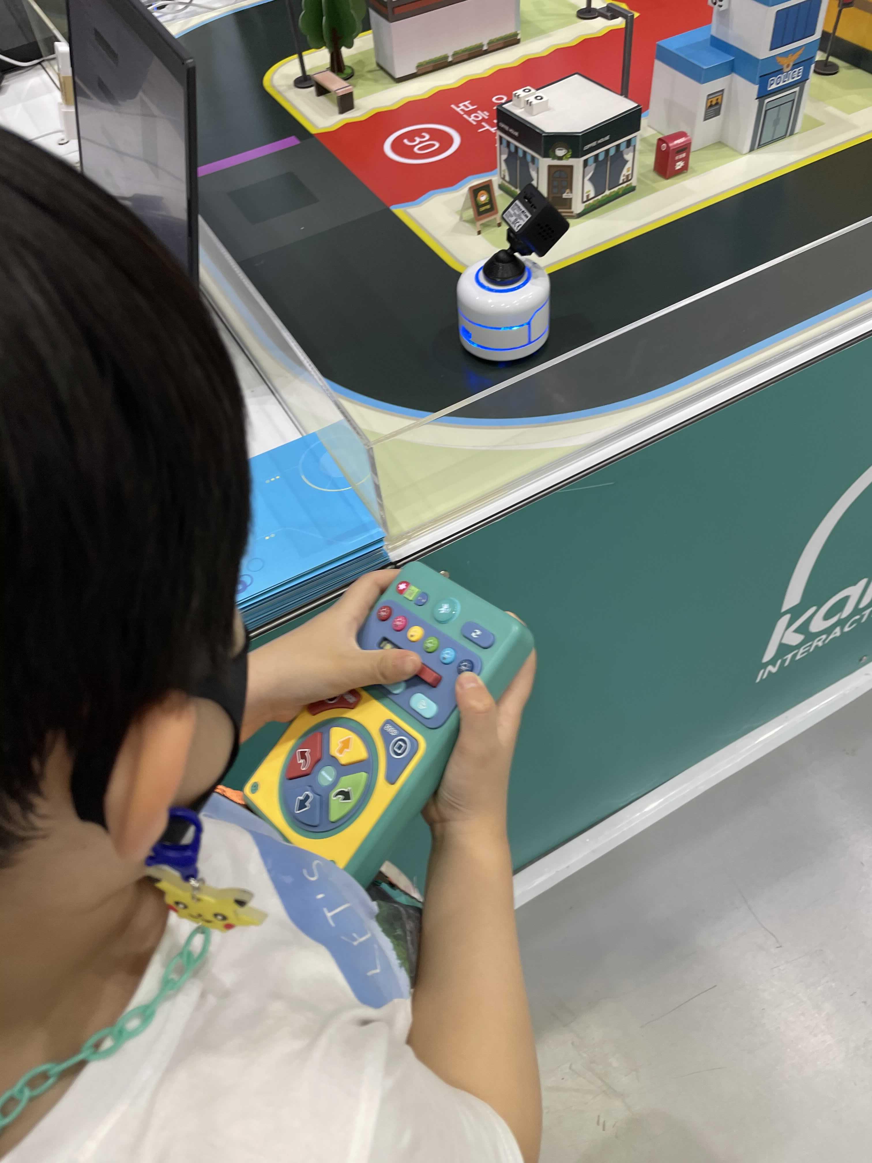 집에서는 패드로 조종했는데 여기엔 조종기가 따로 있으니 신나게 로봇을 주행시켜보는 아이^^