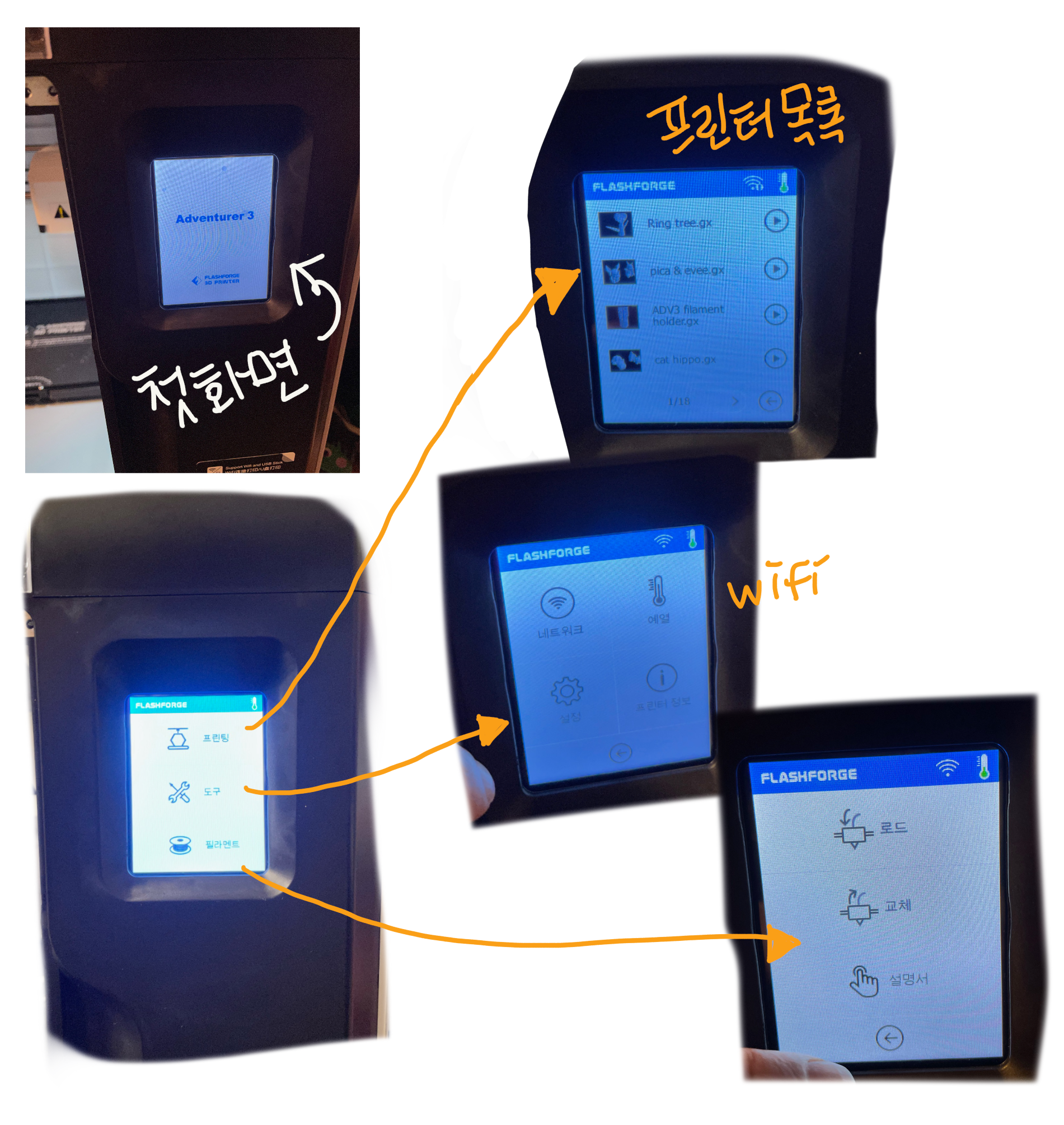 프린터 앞면 디스플레이 화면~~