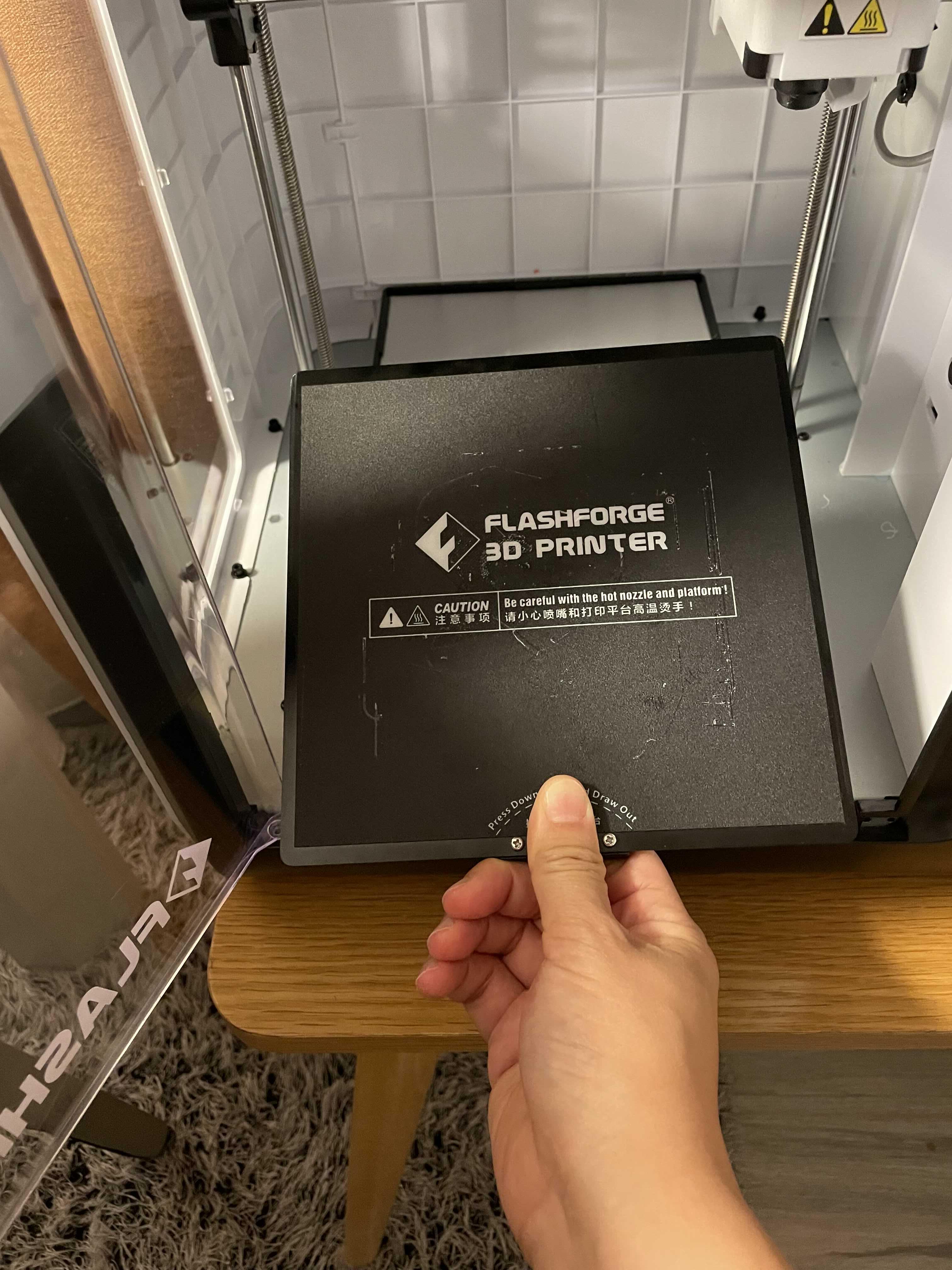 바닥에 출력물이 안착하는 플랫폼이 있어요.