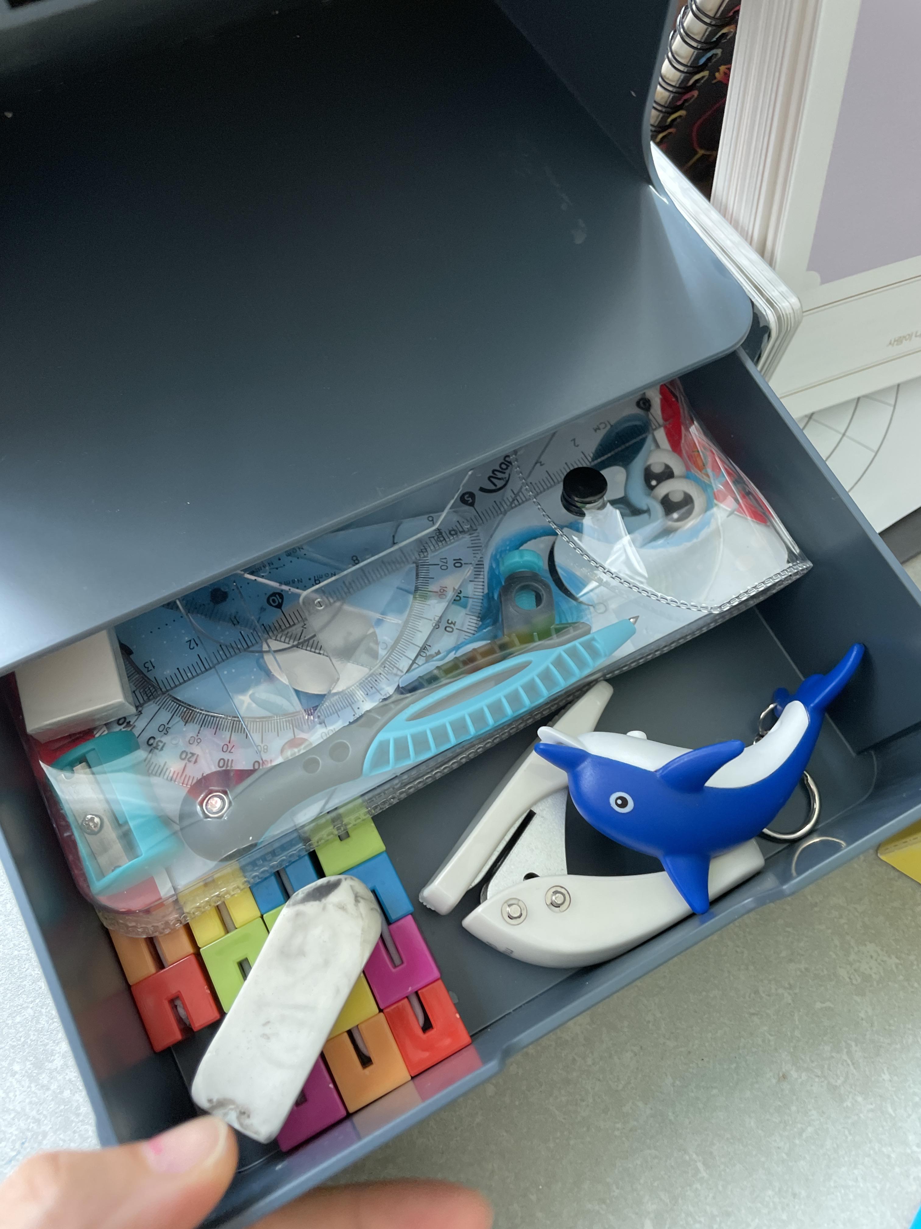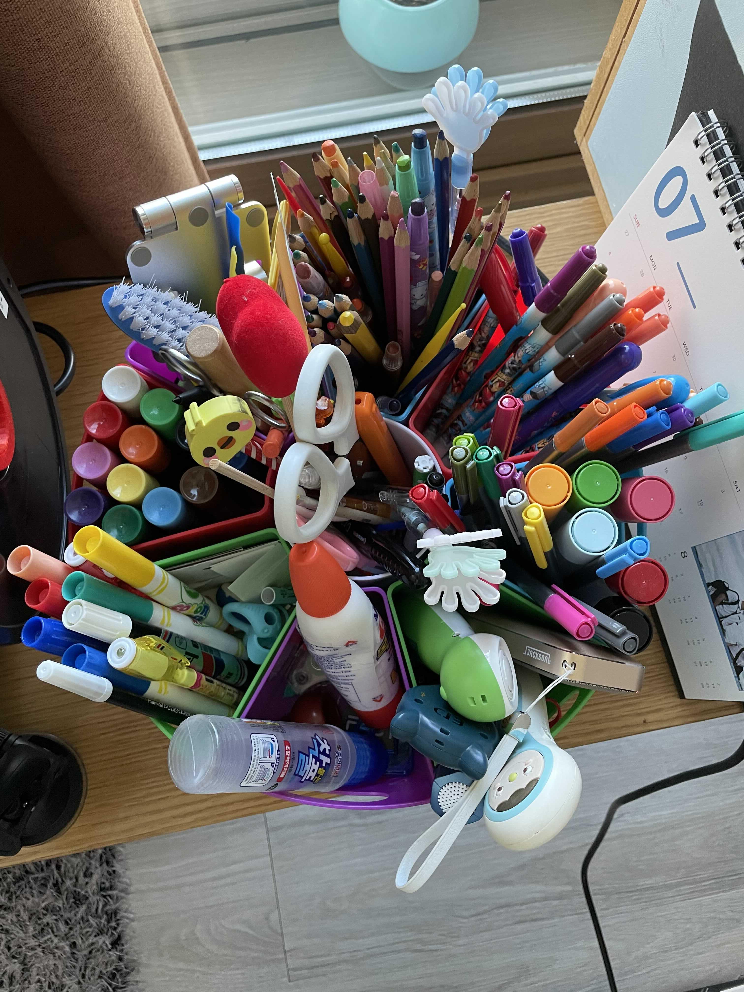 작은 피규어, 클립, 자주쓰는 메모지, 집게 등