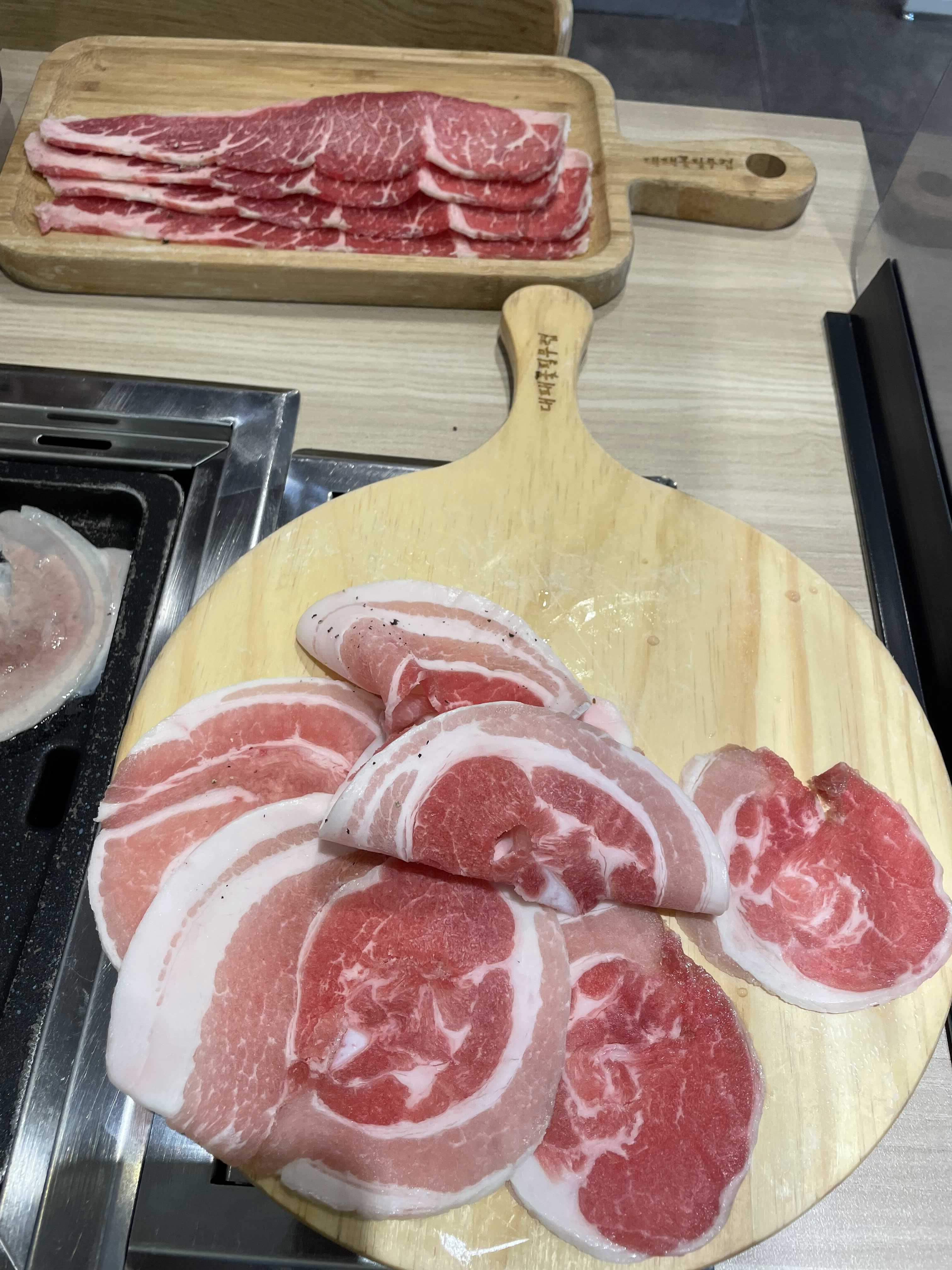 하지만 곱게 세팅된 고기와 각종 채소와 먹거리들이 정갈하게 정리된 샐러드바에 일단 반했고