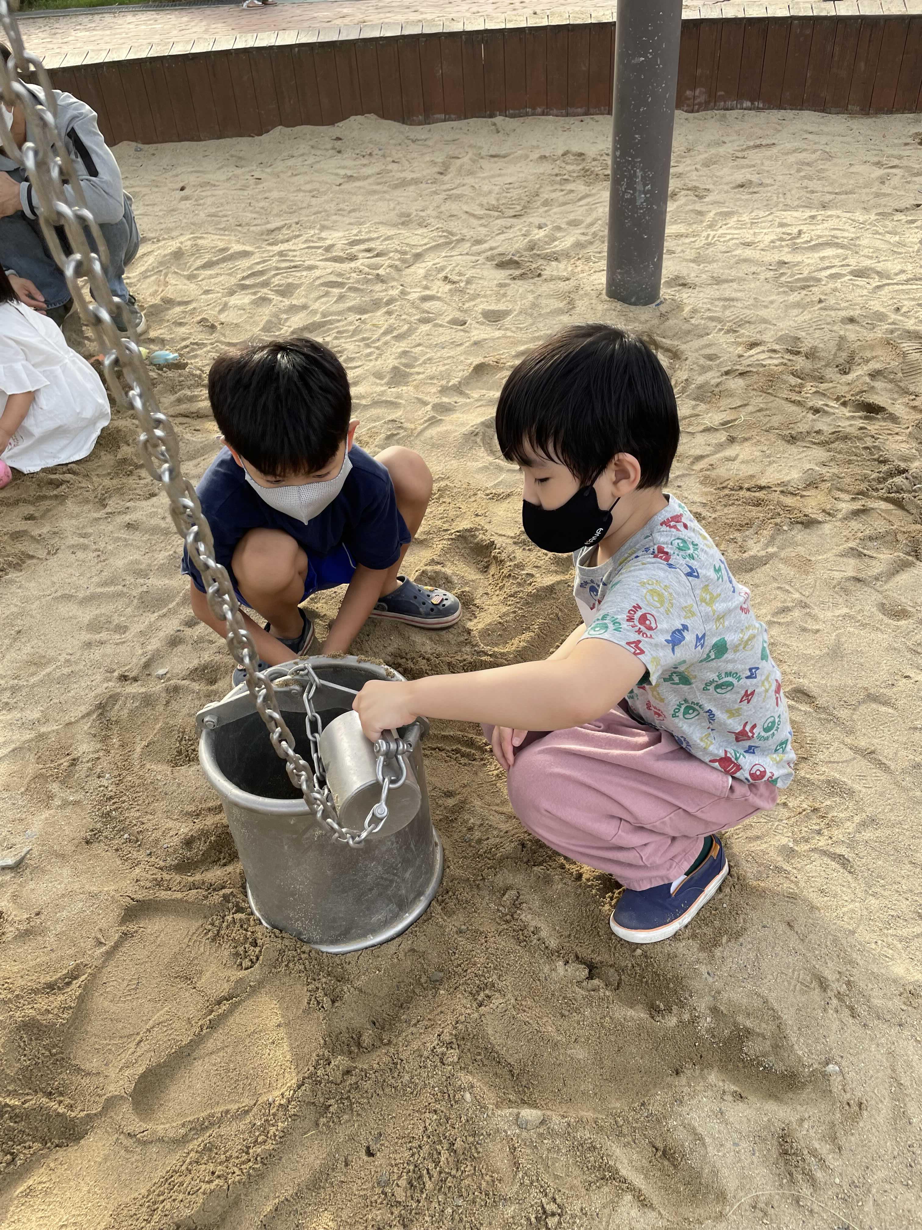 좋은 형아를 만나서 사이좋게 모래놀이 중인 아이!!