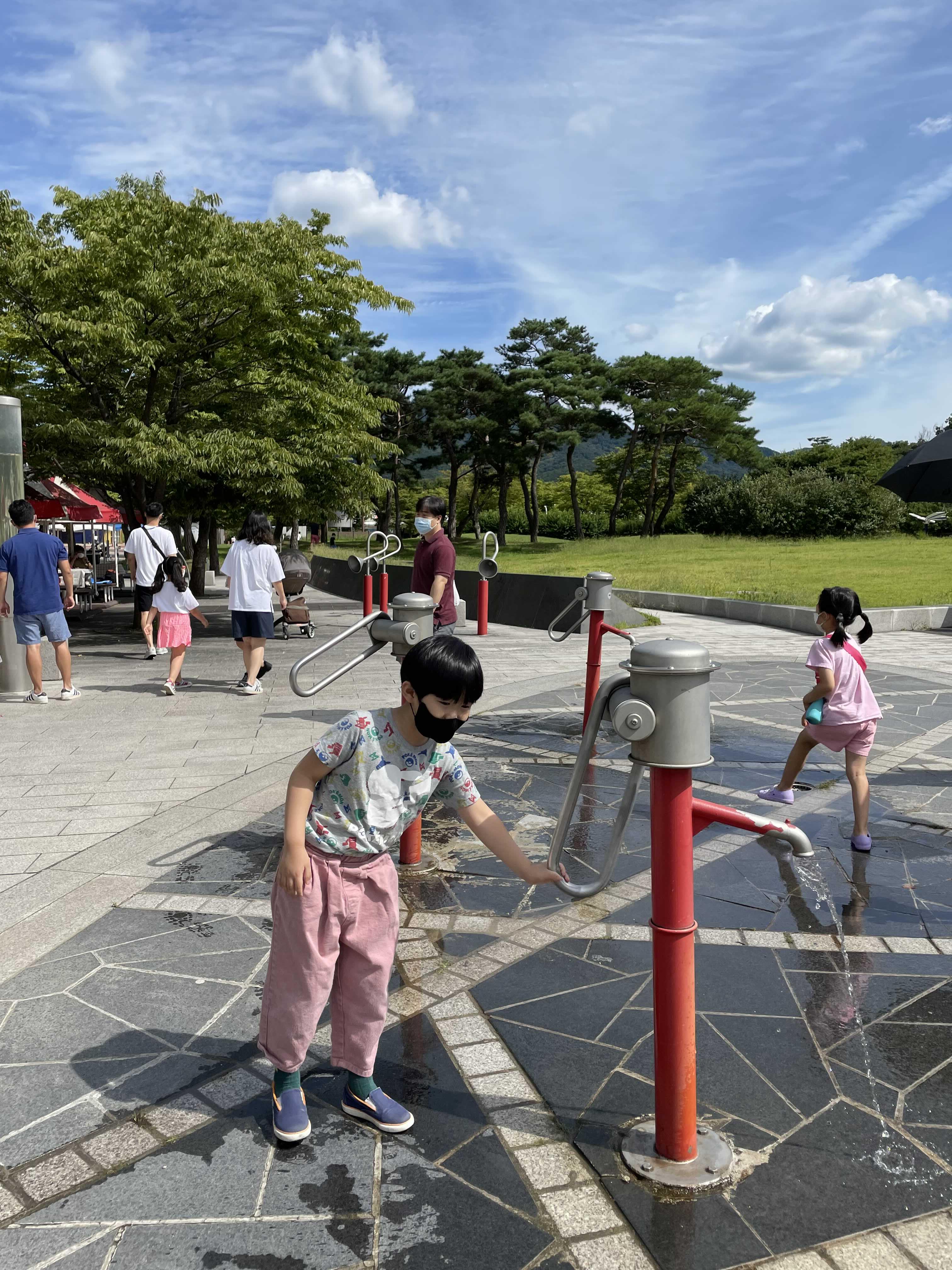 주차장으로 가는 길에 물 펌프놀이 한번 더 하고