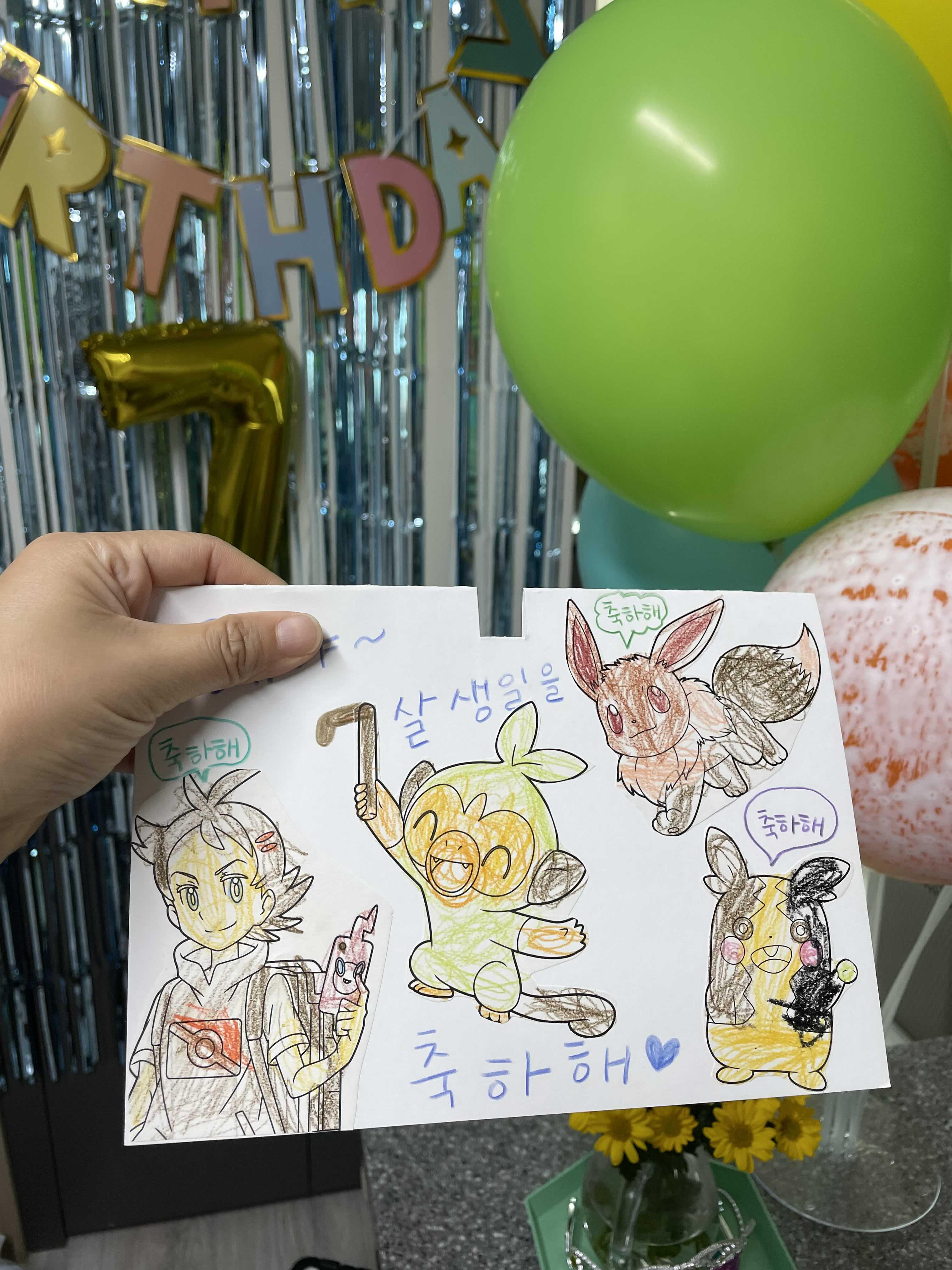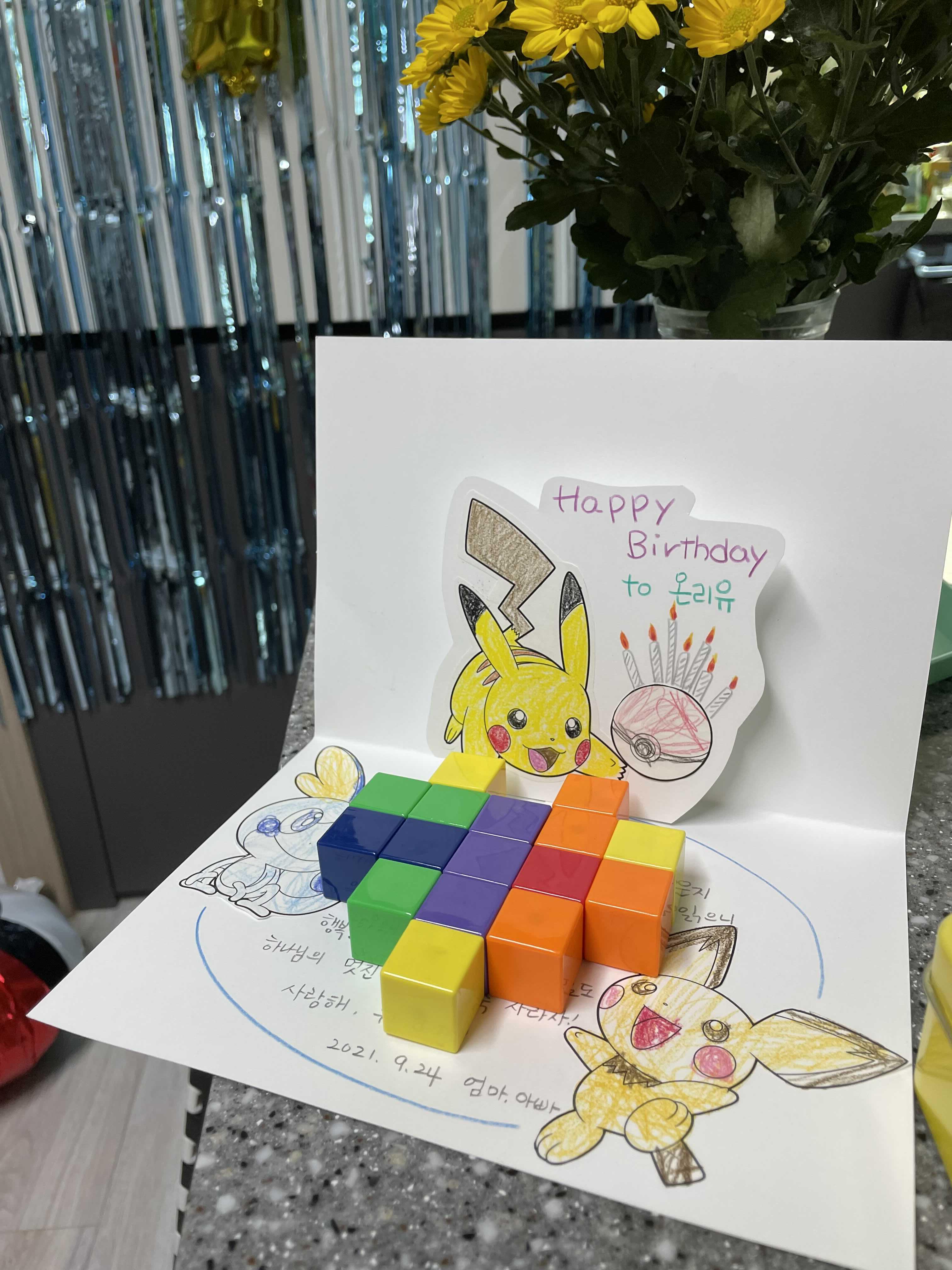 참, 카드는 아이가 평소 색칠해둔 포켓몬들을
