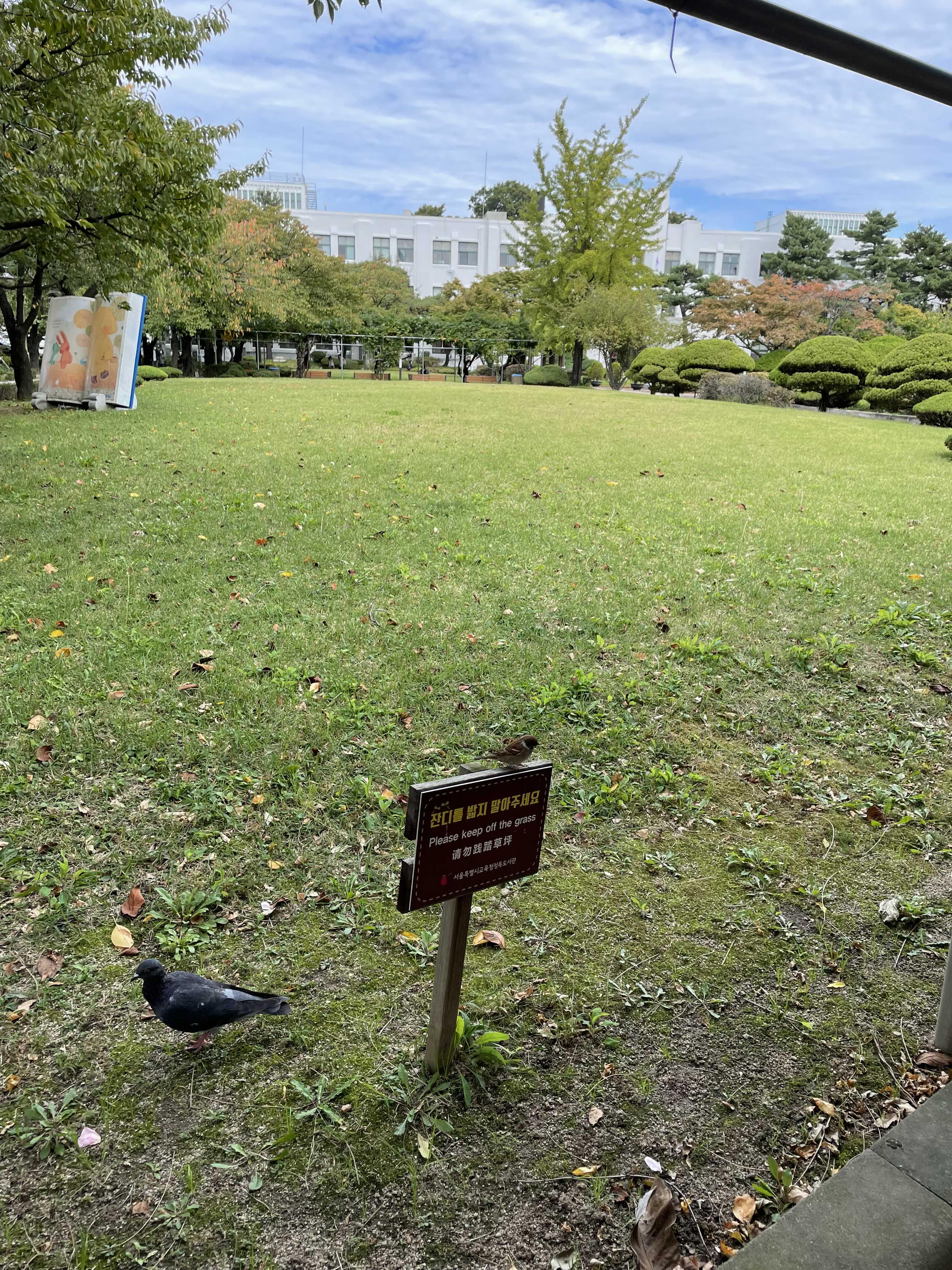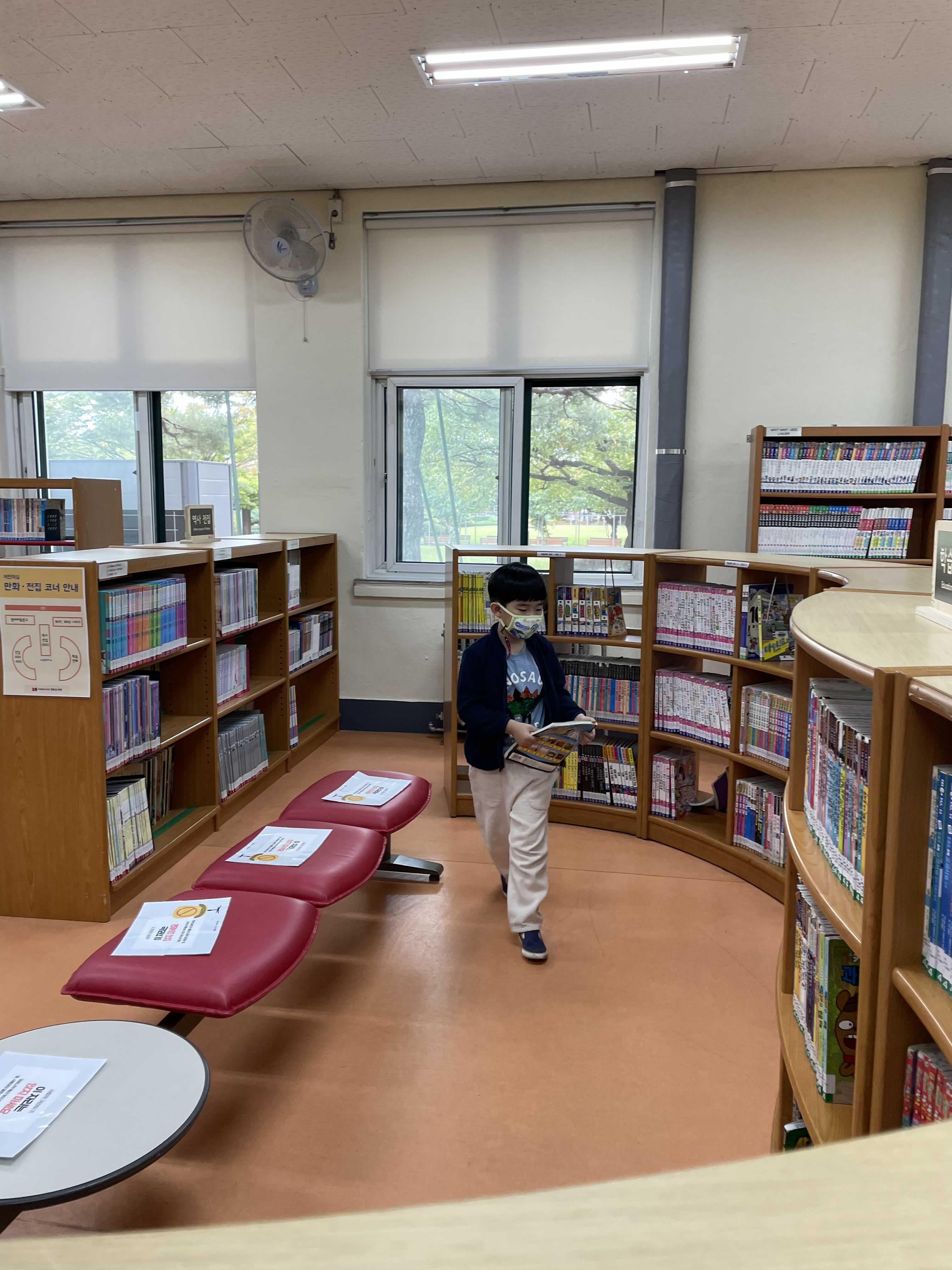 입구에 남편만 두고 도서관으로 들어왔어요.