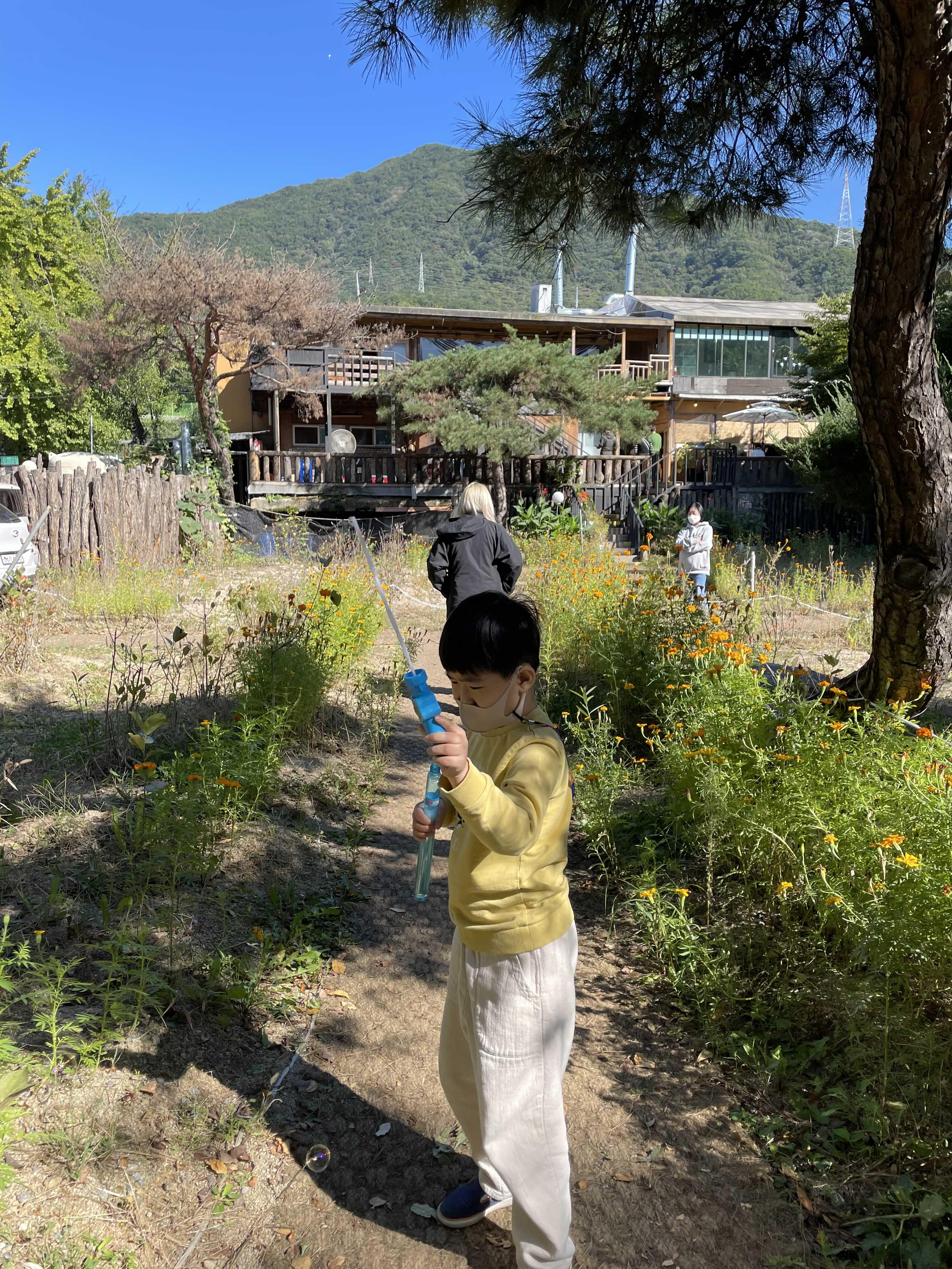 미리 준비해간 비눗방울 놀이하기에도 더없이 좋은 곳