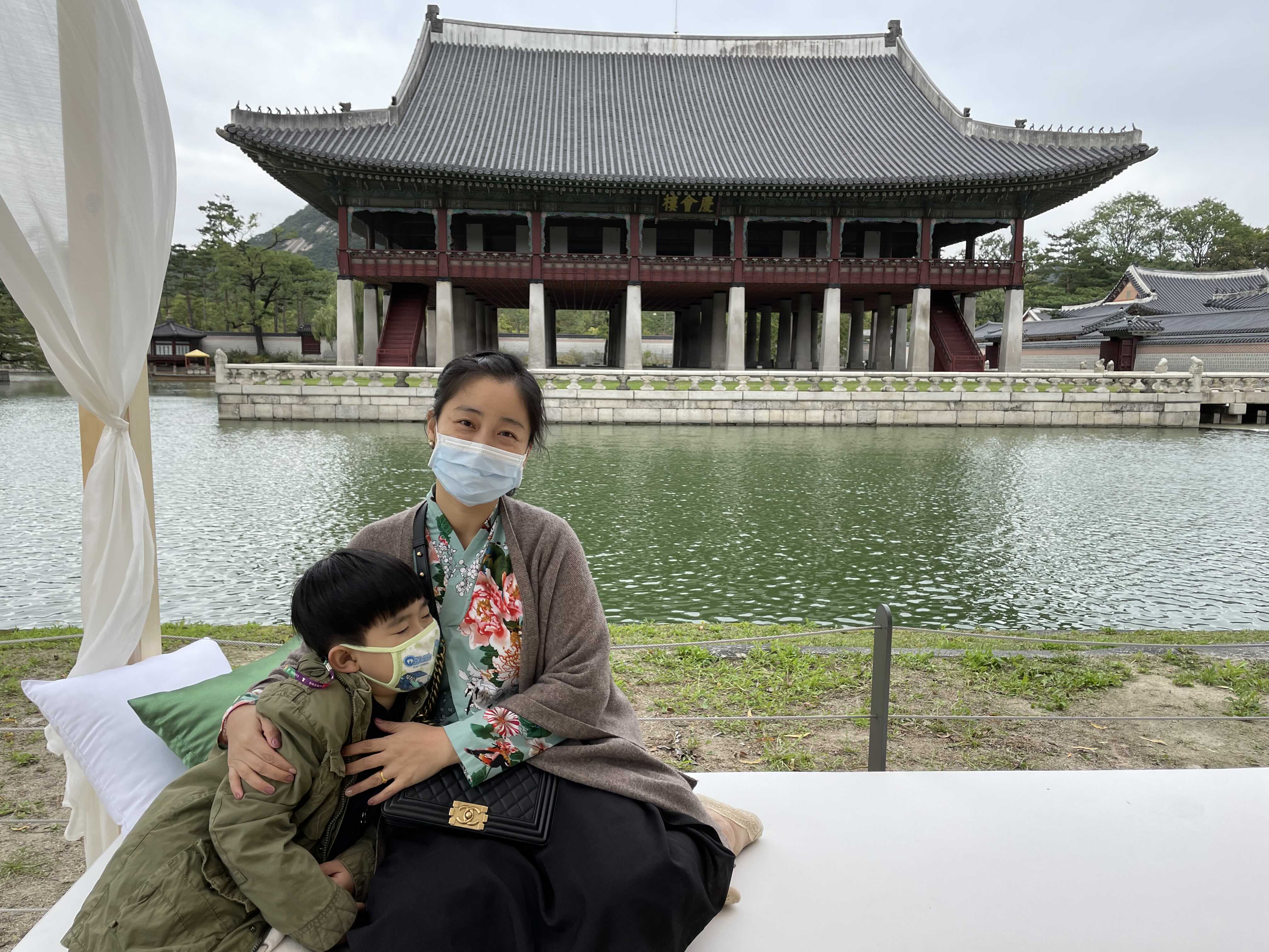 한복을 입은 외국인이 신기해보였던지 아이가 관심을 갖기에 함께 사진도 찍고 살짜쿵 대화도 나눠 보았어요.