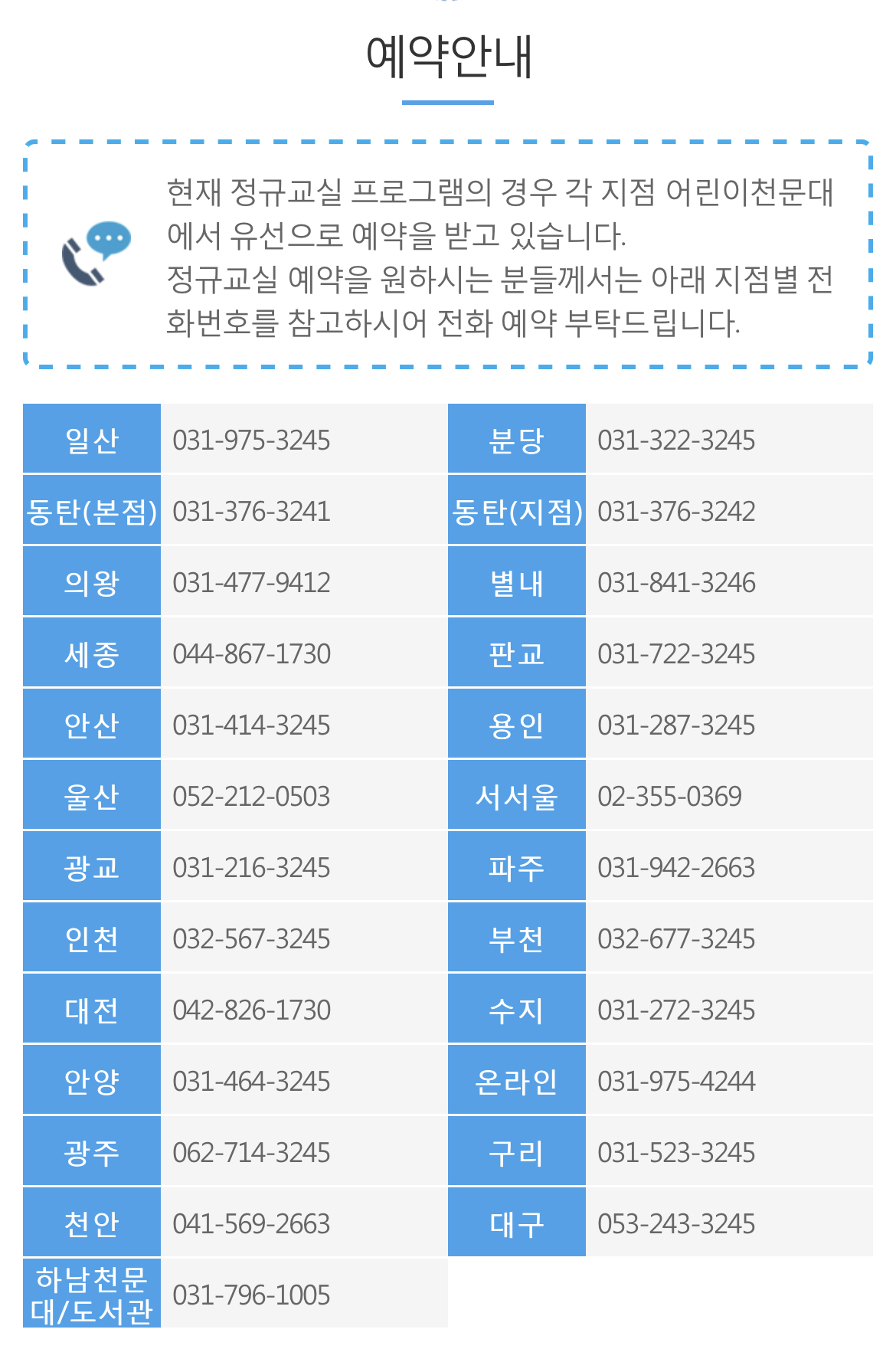 정규수업은 전화예약해야 한다는 안내사항이 있네요.