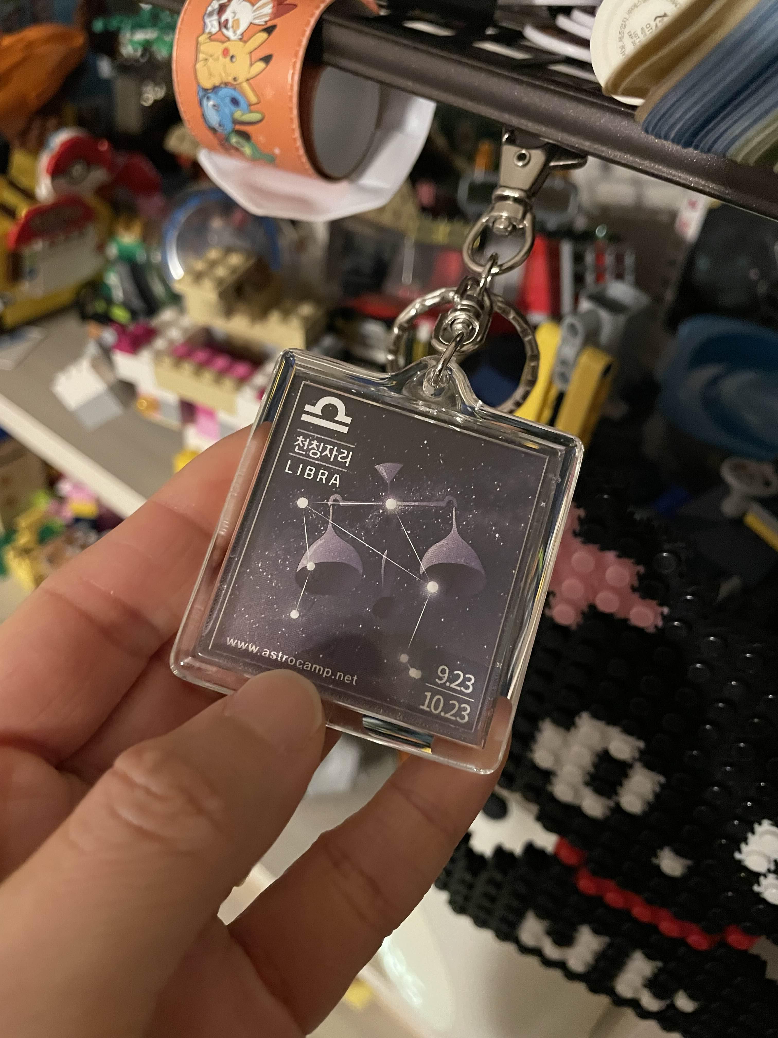 일일체험 기념품으로 본인 별자리가 그려진 야광 열쇠고리를 받아왔네요.