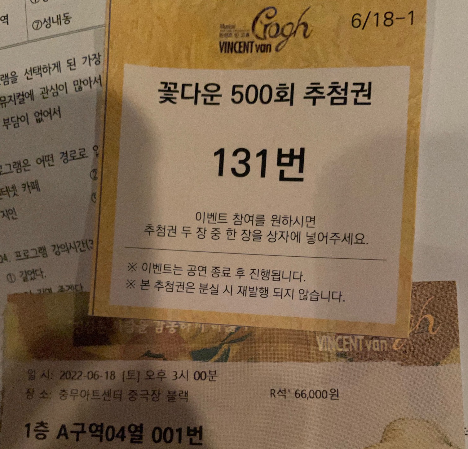 특히나 500회 기념 공연이라 뮤지컬 마친 후 두 명의 배우님께서 직접 행운권도 추첨해주시고~