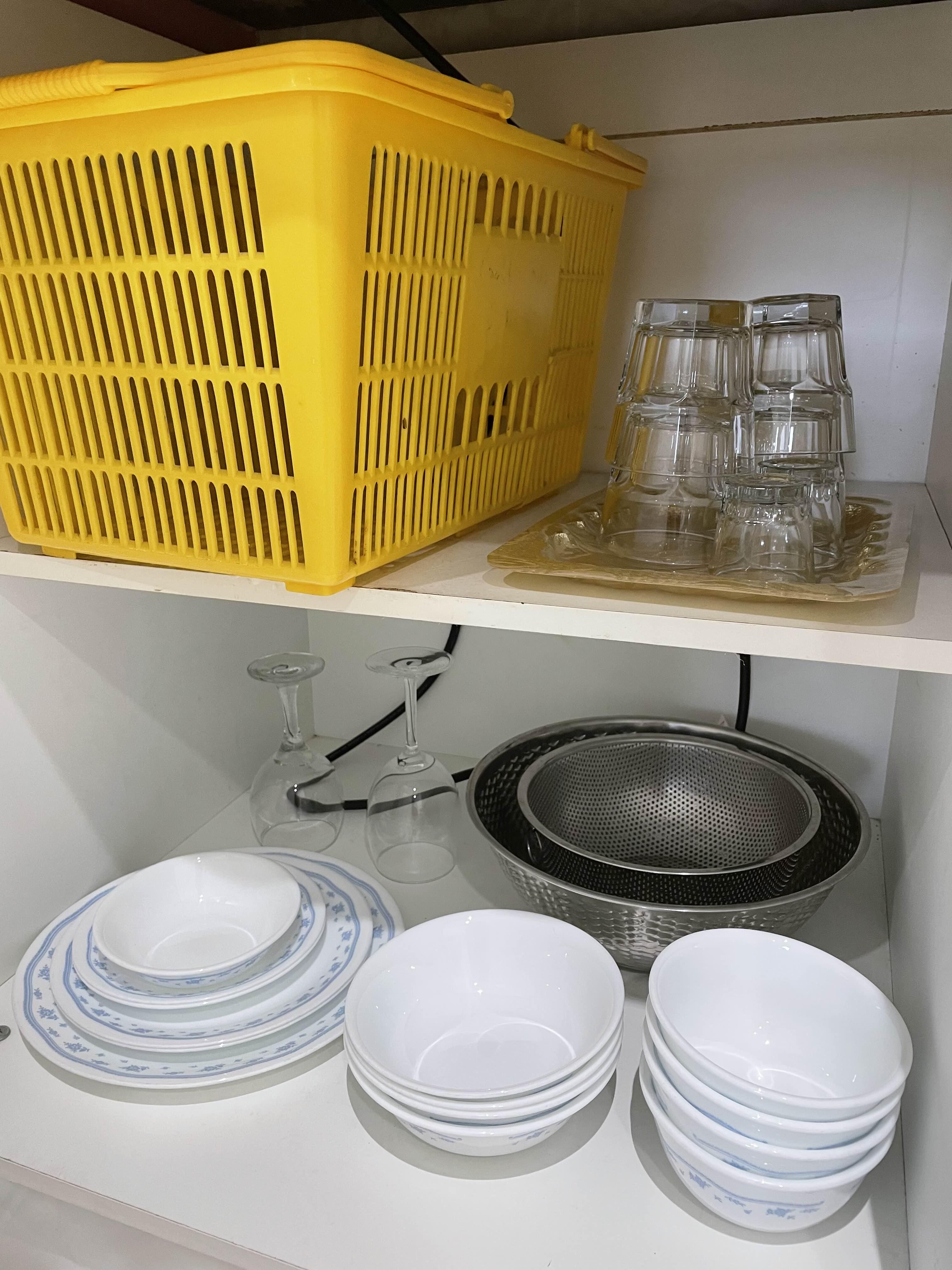 주방에 있는 집기류를 이용해서 바베큐를 할 수 있어요. 음식이나 그릇을 바베큐 장으로 나르기 쉽게 노란 바구니가 세팅되어 있네요! 센스 짱!!