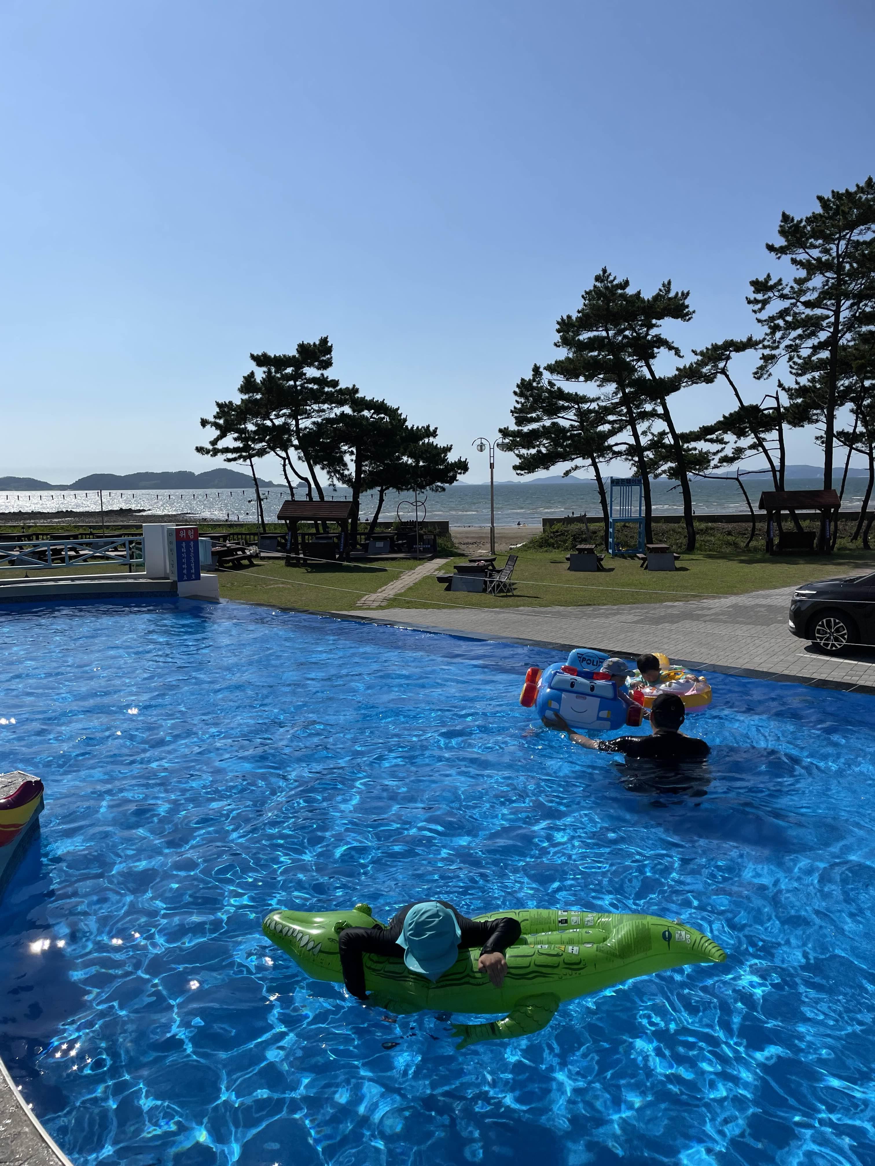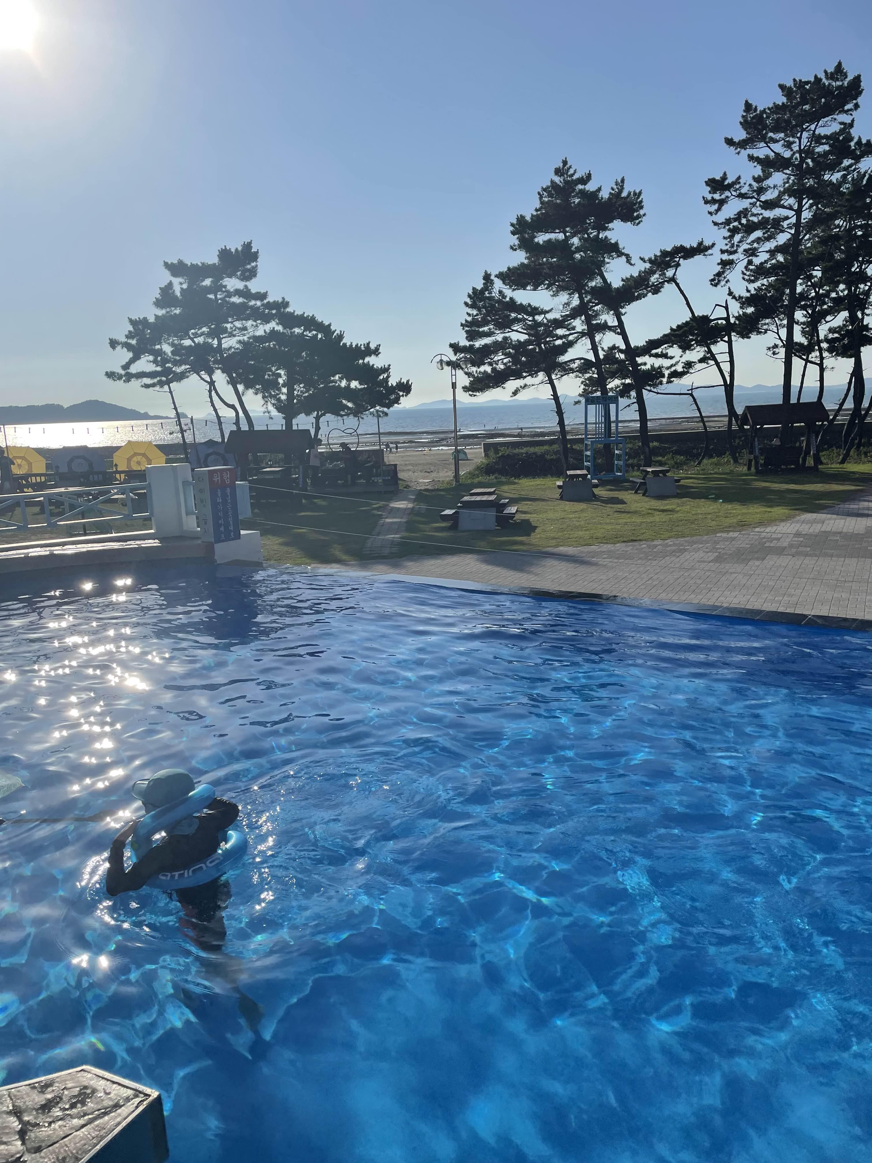 수영장에서 놀다 바로 바다가서 놀 수 있어요.