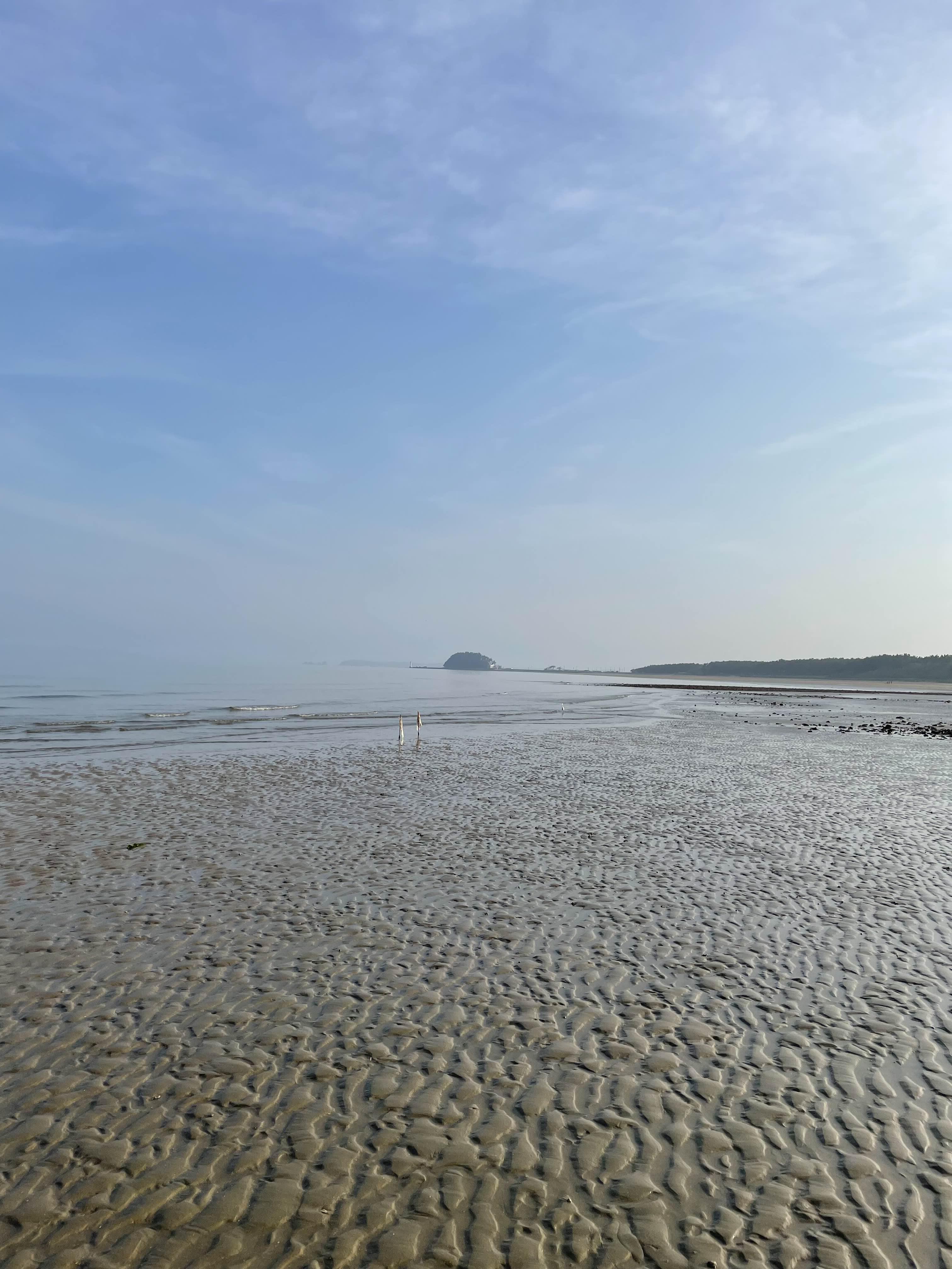 제가 있었던 동안엔 낮시간에 썰물이 쭉~~ 들어오구요. 새벽 6-7시와 저녁 8시 이후 물 때였어요