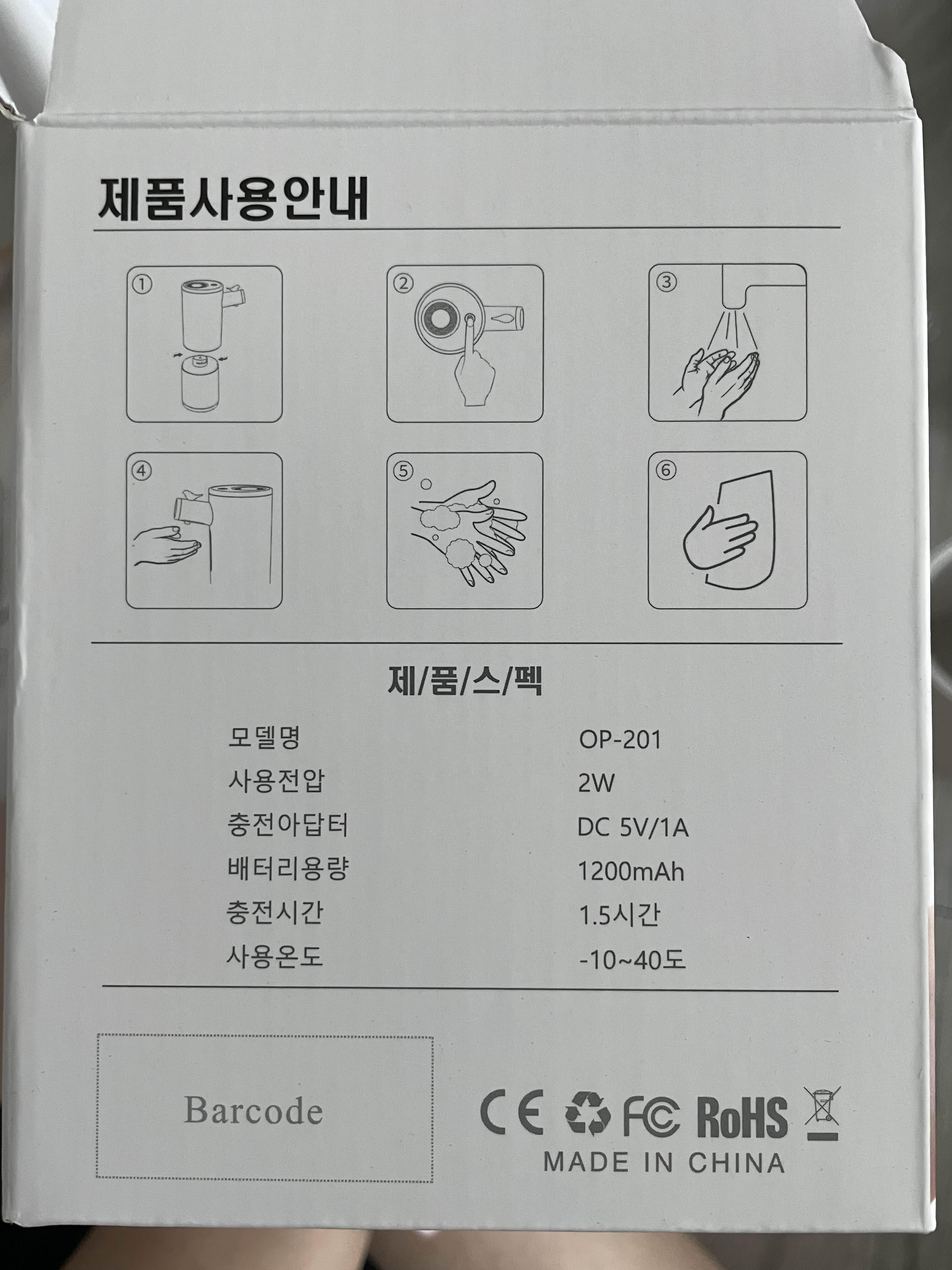 원프라임 자동 손세정기 물비누 디스펜서 USB충전식 거품비누 센서타입 OP-101 OP-201