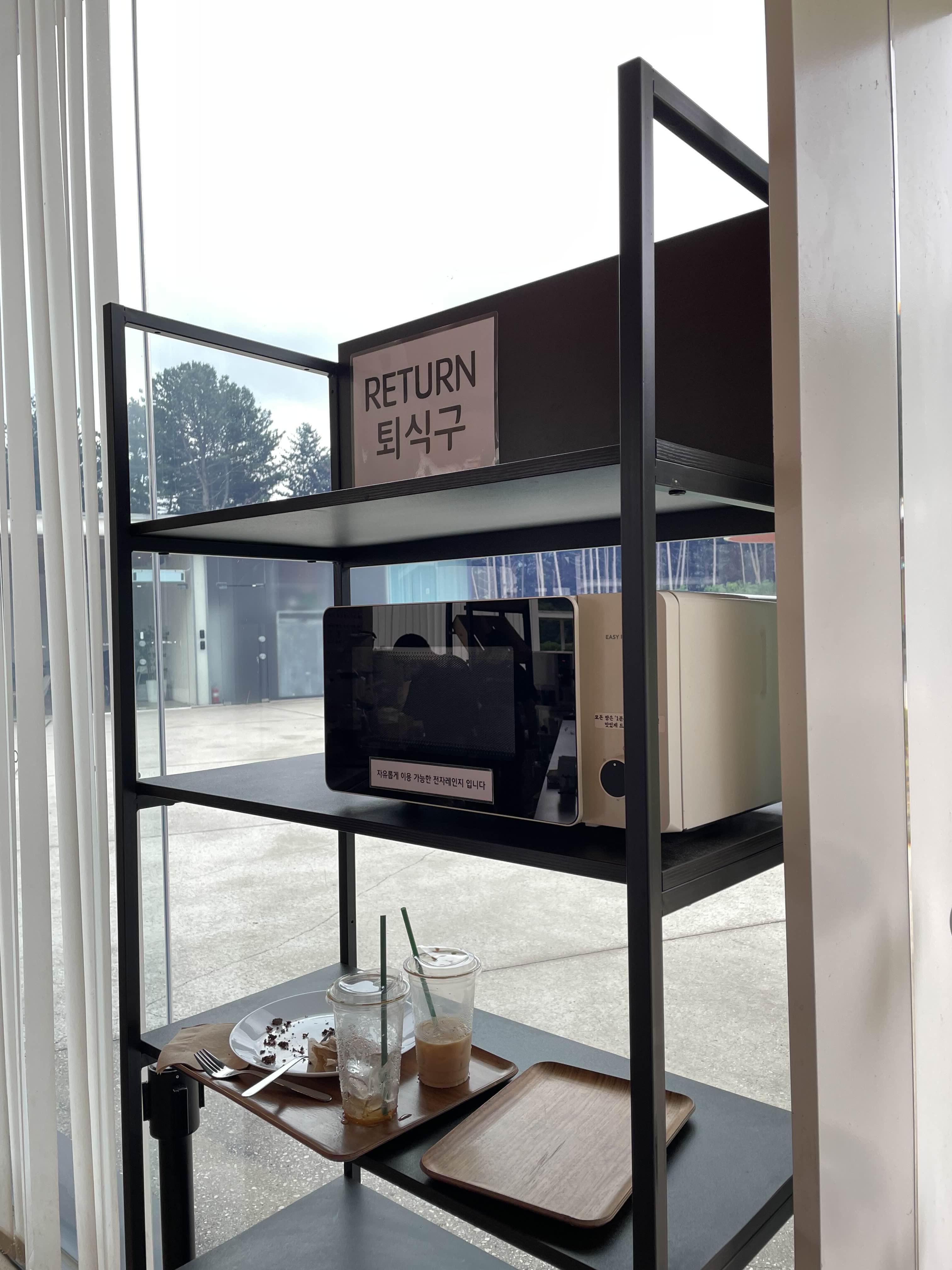 퇴식구엔 셀프 사용 전자레인지가 있어요.