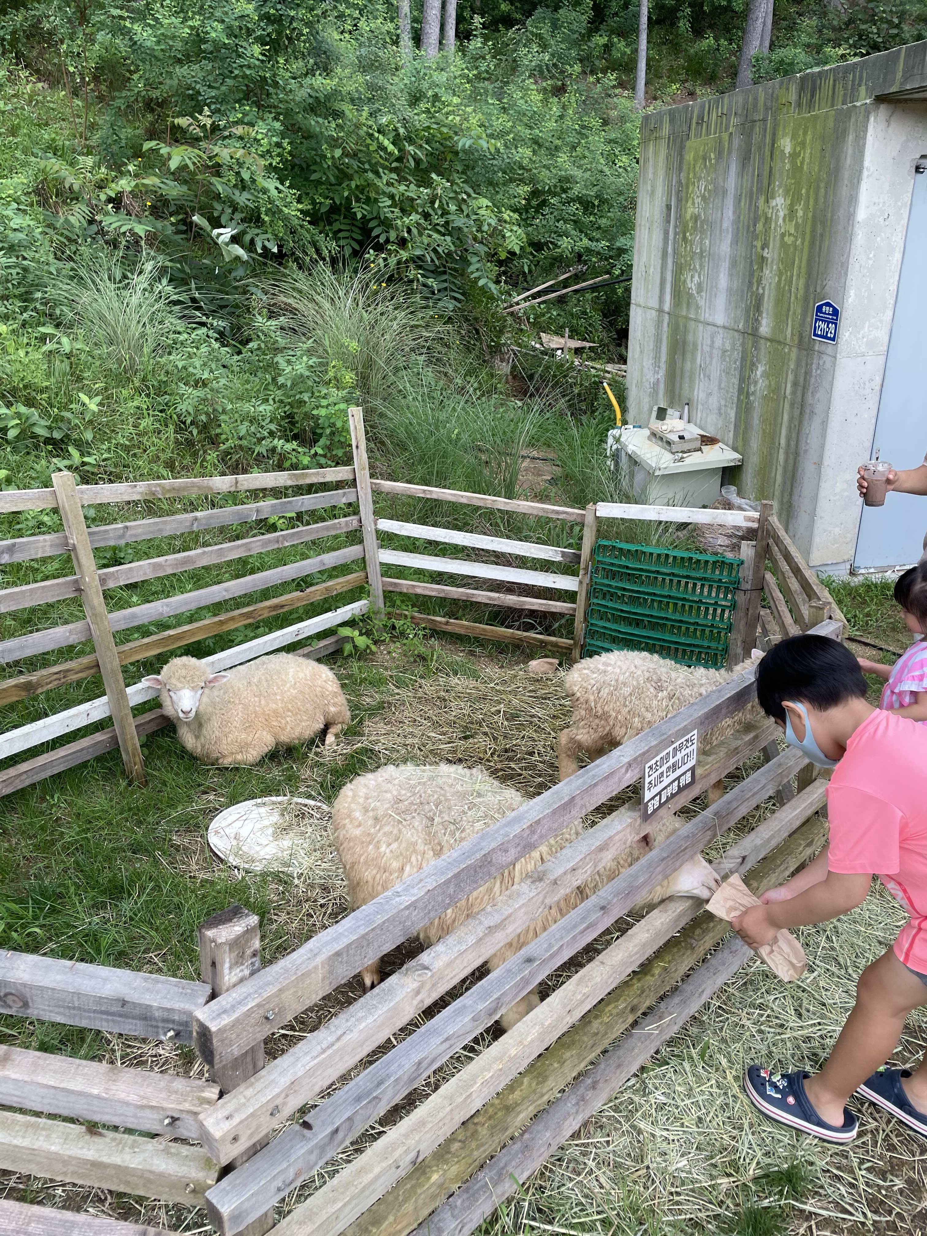 양은 우리 안으로 들어가서 체험할 수 있어요.