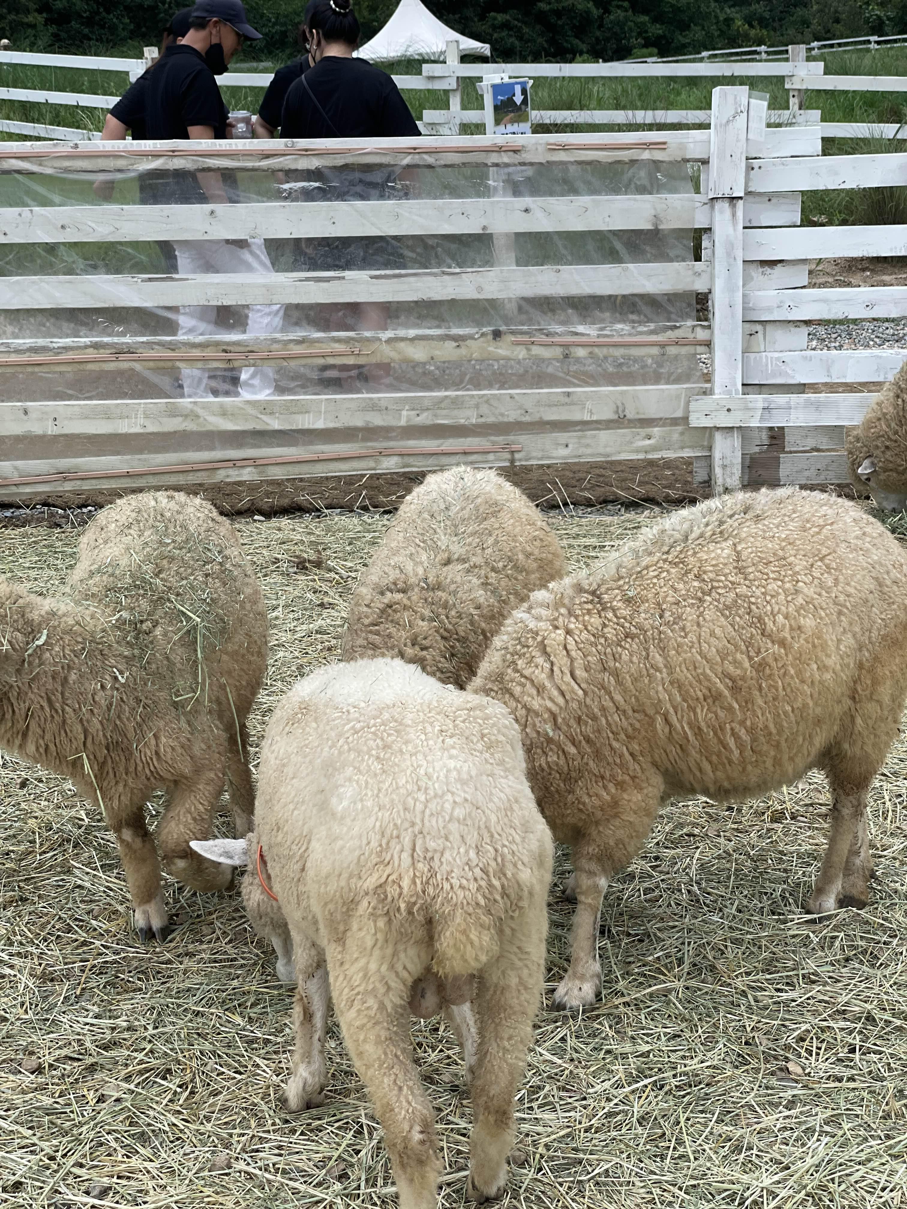 카페로 올라가는 길에도 양들이 옹기종기 모여있어요.