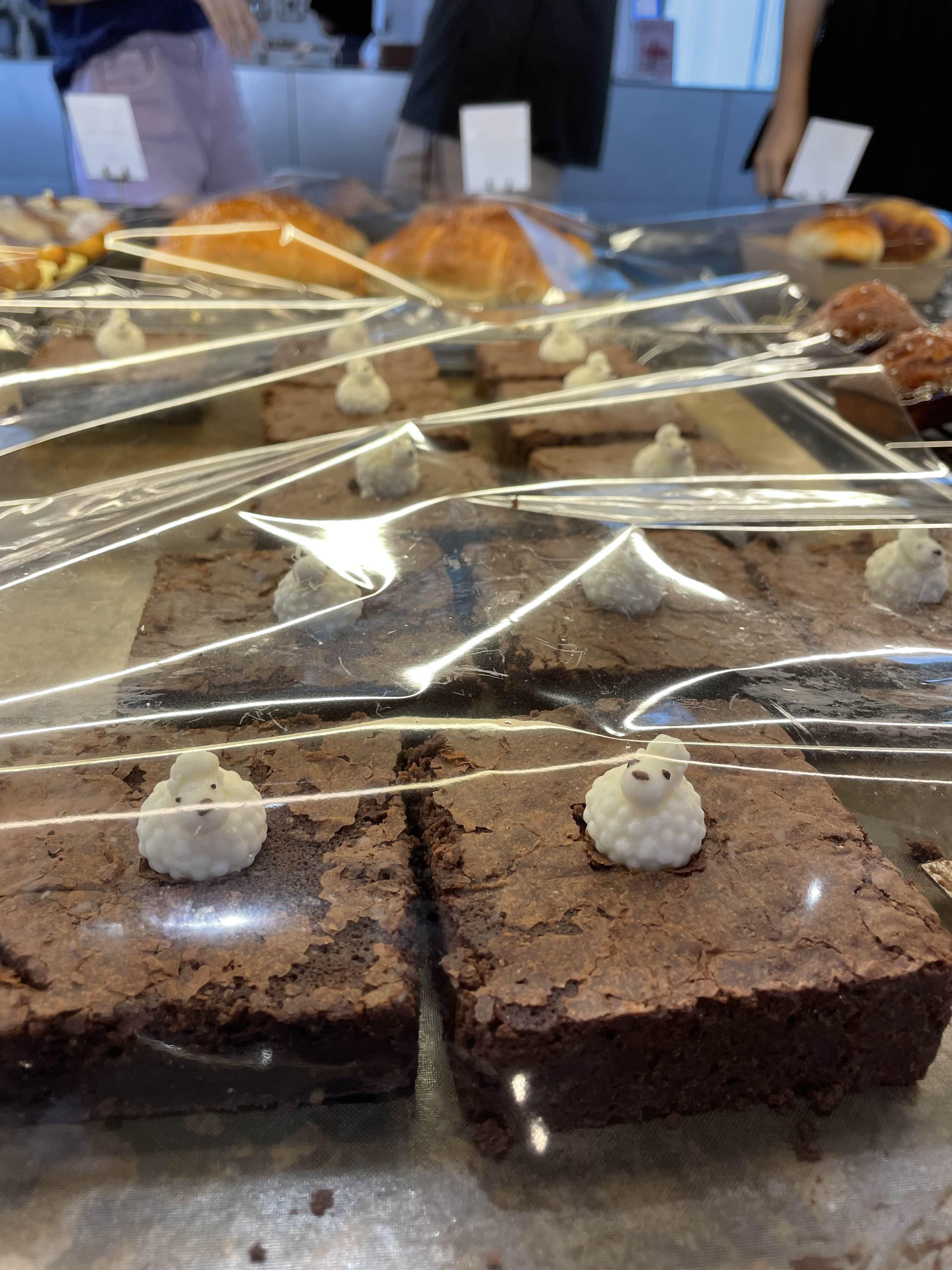 브라우니에 귀여운 어린양이 앉아 있네요.