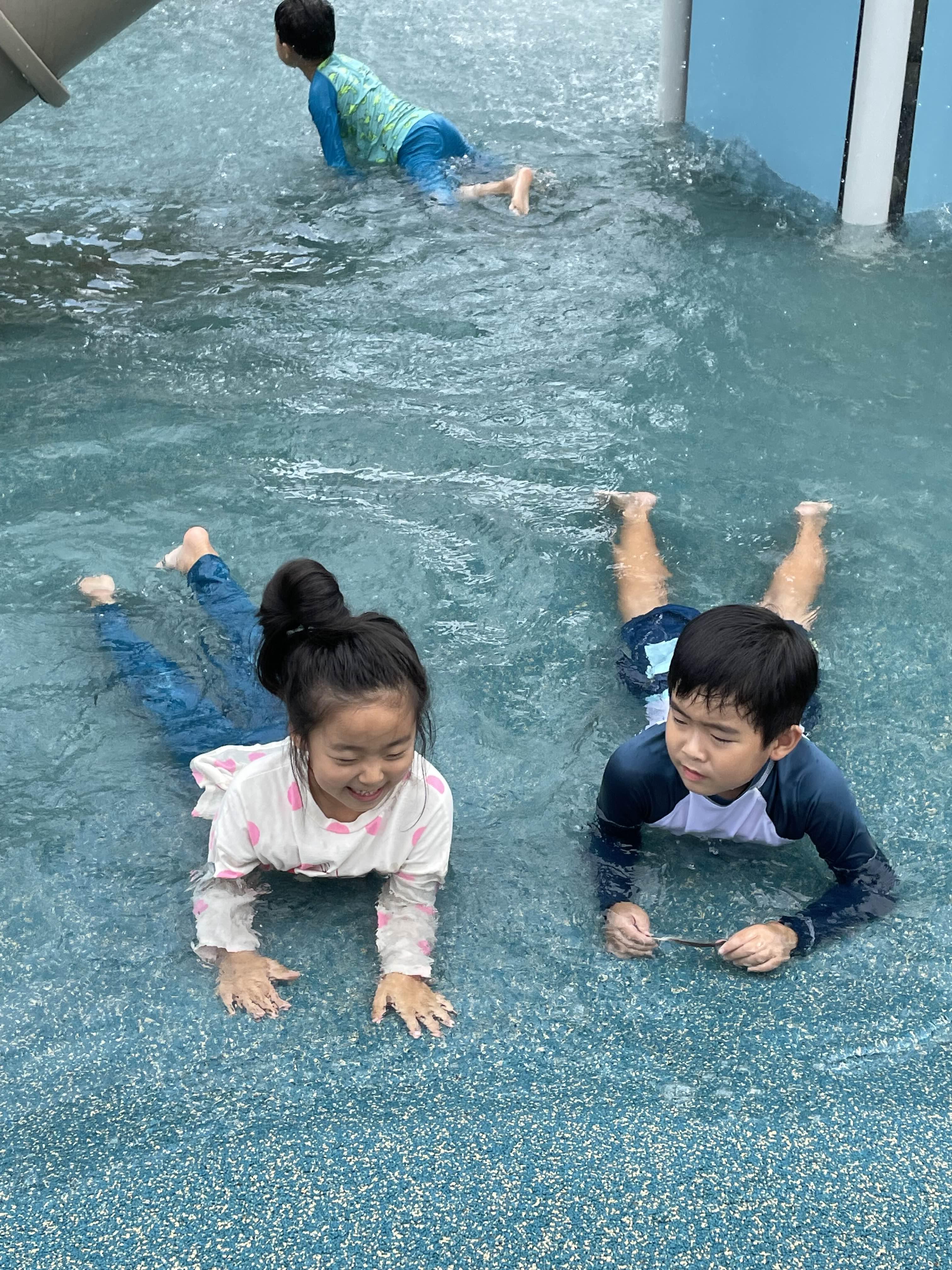 물 수위가 낮기에 아이들은 계속 포복자세로 물속을 기어다녀요~ ㅎㅎㅎ