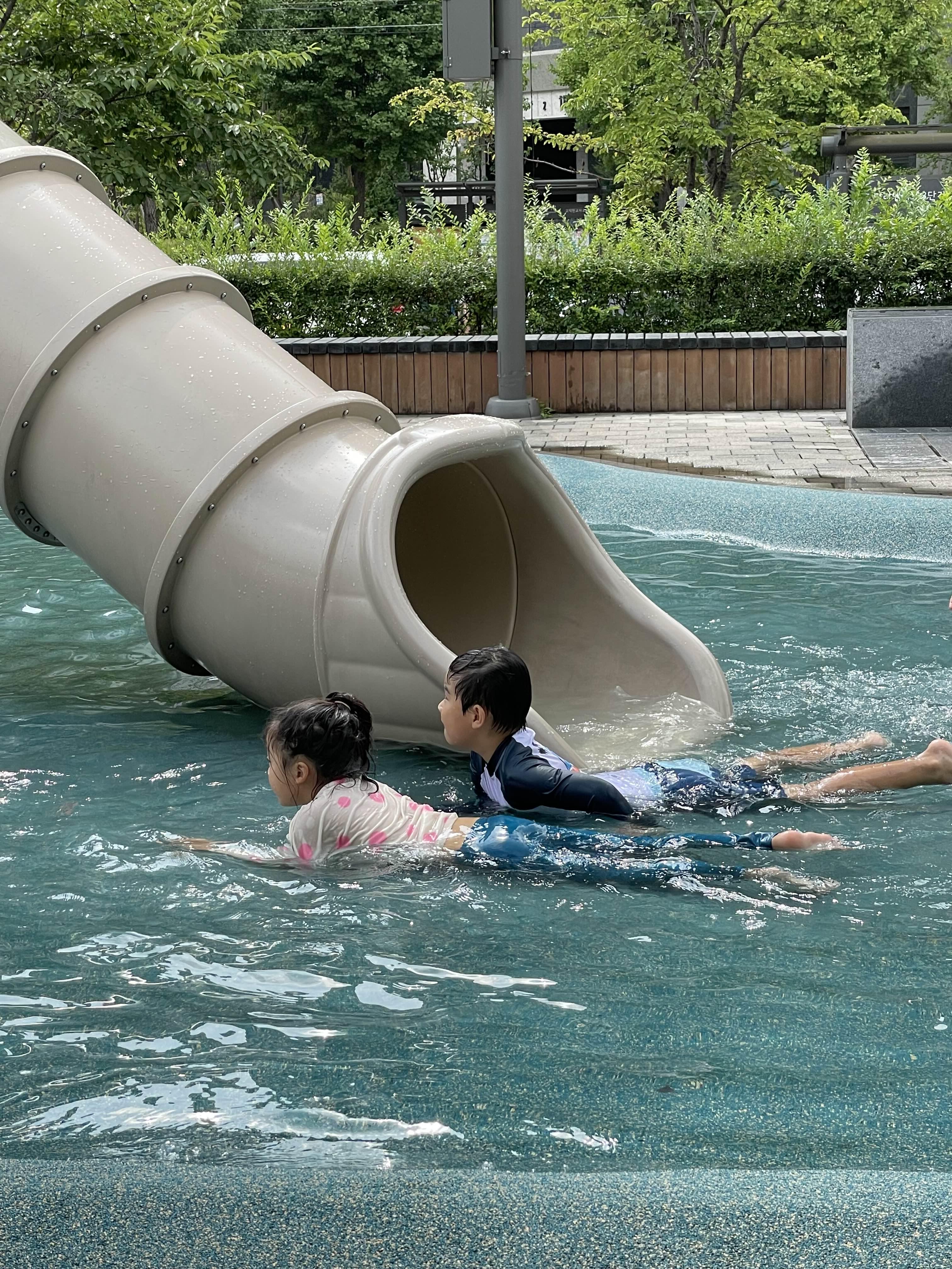 물놀이장을 이용하기 부담스러울 때 그냥 지나가다 물놀이장을 만났을 때 가볍게 물놀이하기 좋죠.