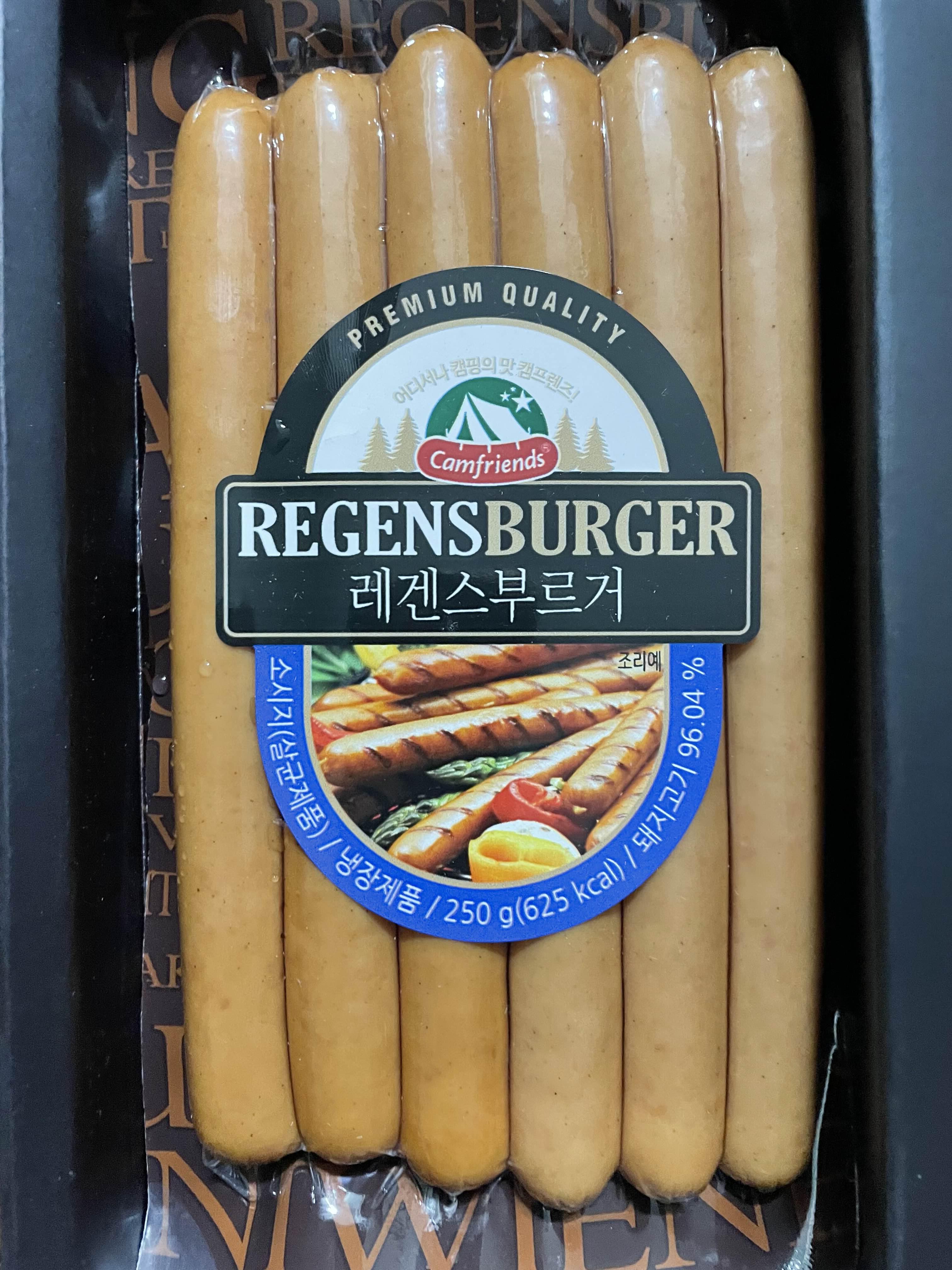 레겐스부르거: 독일 수제 소세지 (레겐스부르크 사람이라는 뜻이네요) 돈육 함량이 96%로 씹는 식감과 풍부한 육즙이 특징