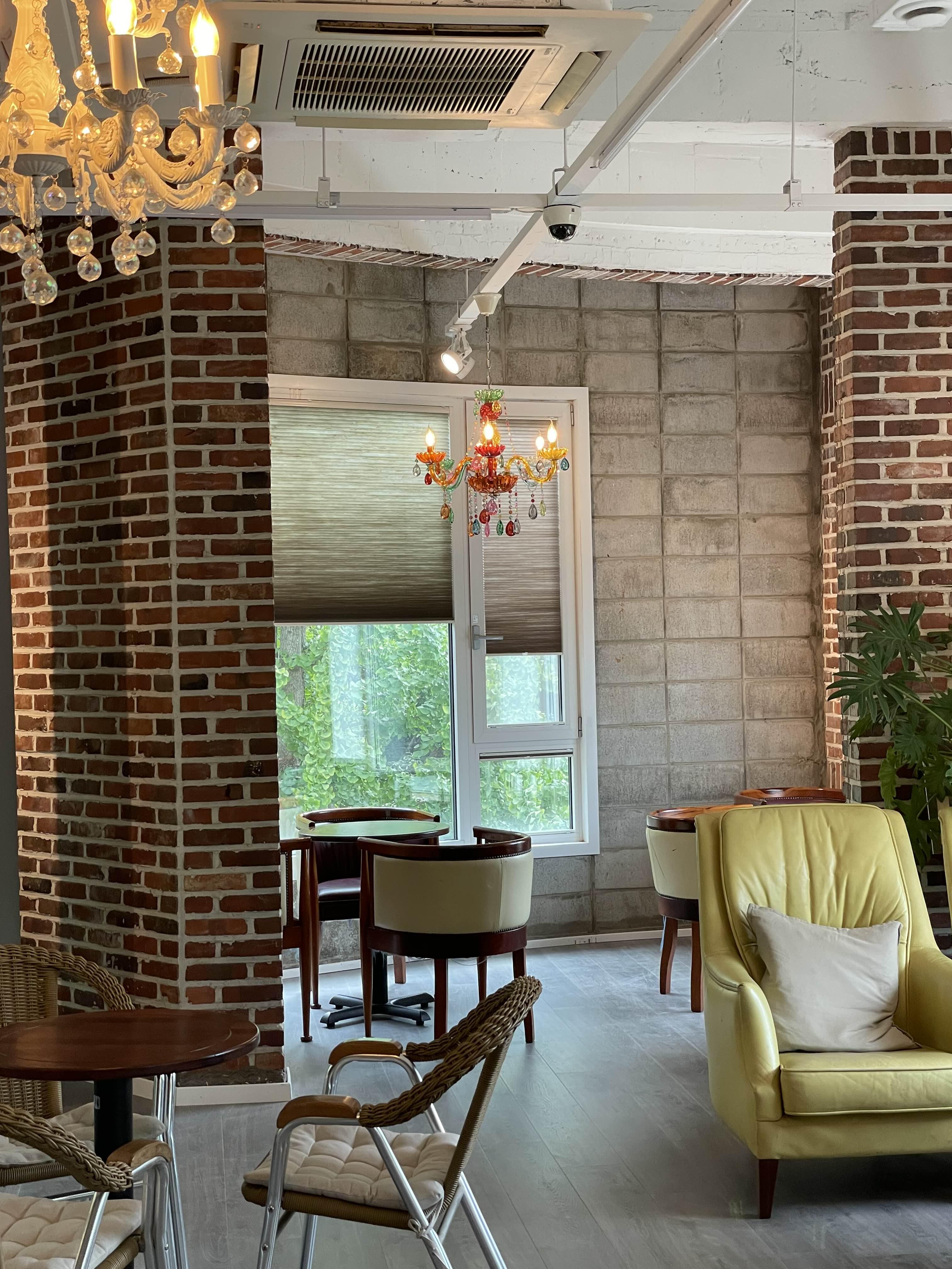 작은 소품들과 식물들, 우드와 벽돌로 장식되어 있어 분위기가 따뜻하고 다정해요.