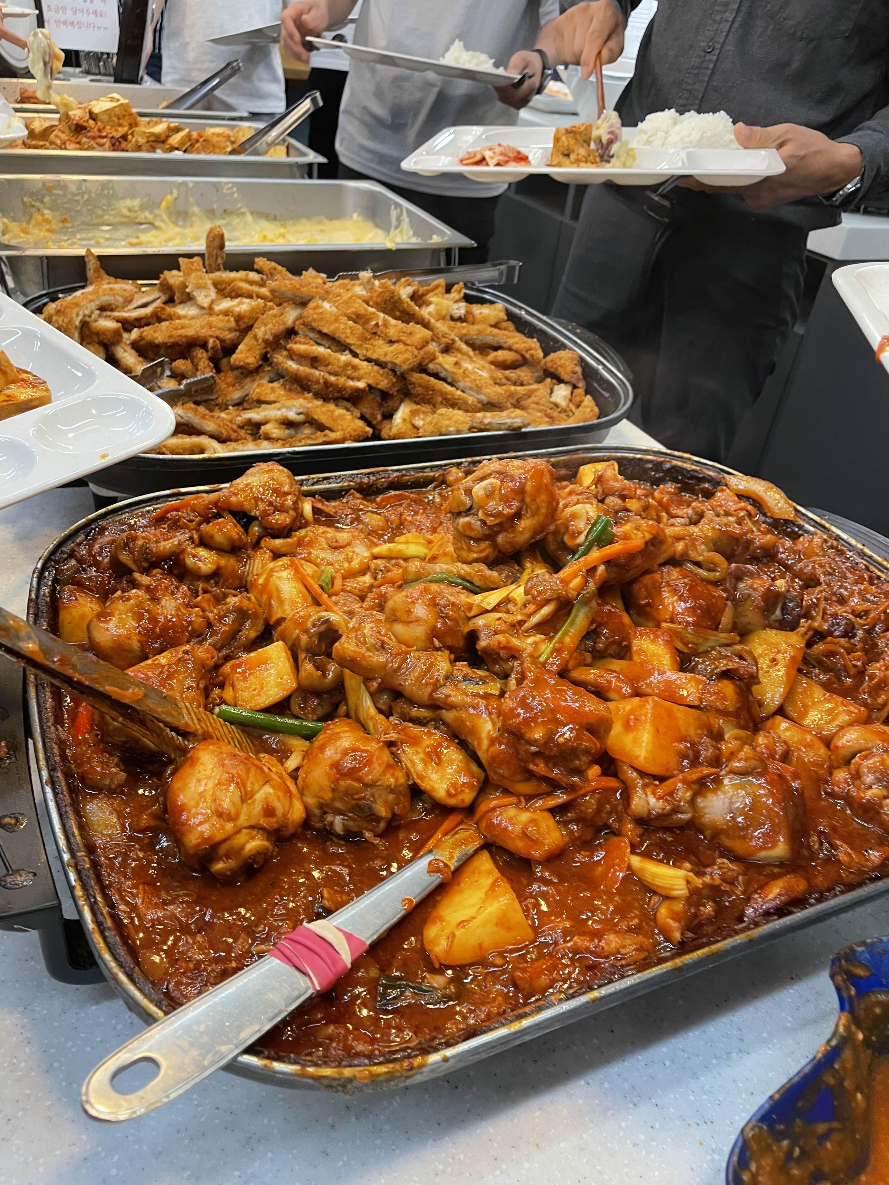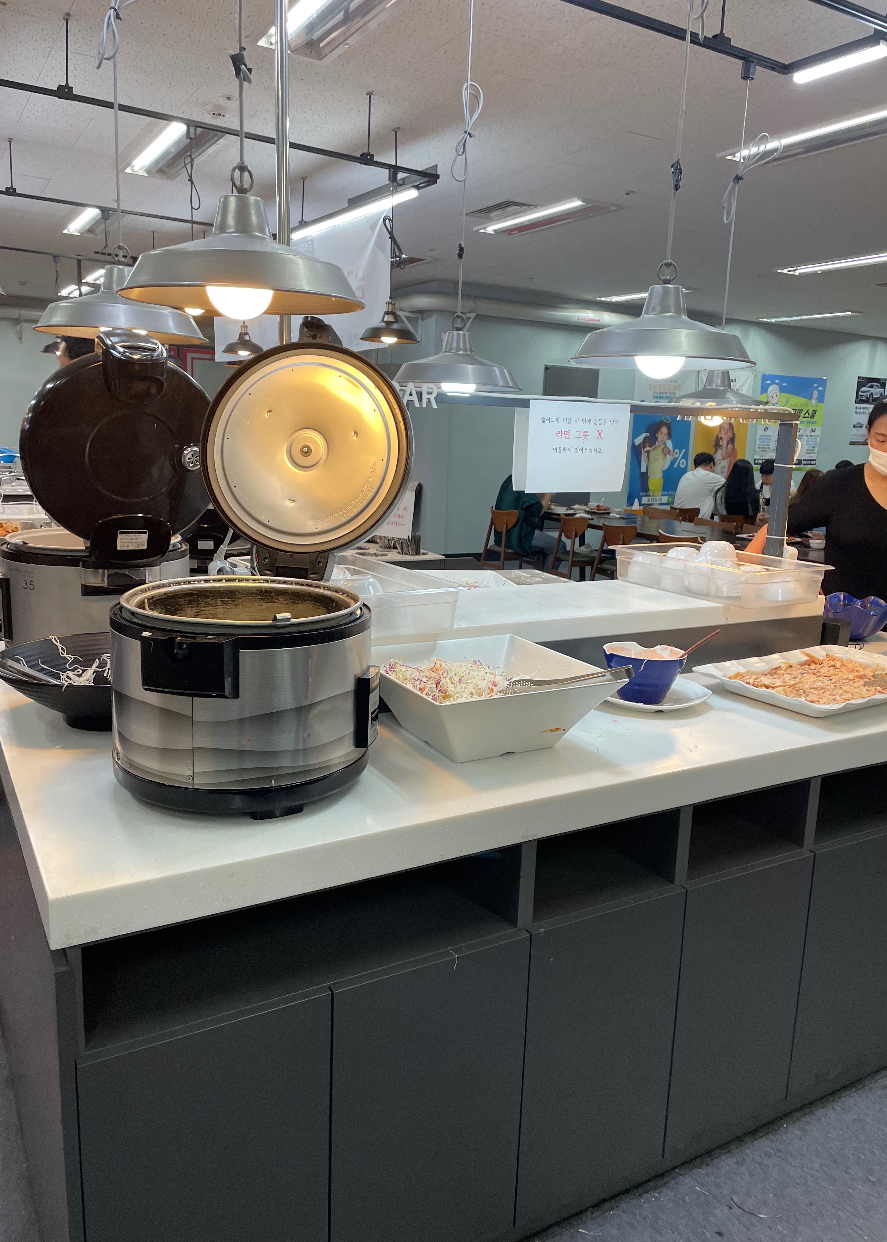 직원식당처럼 본인이 양 조절하며 식판에 담을 수있어요.