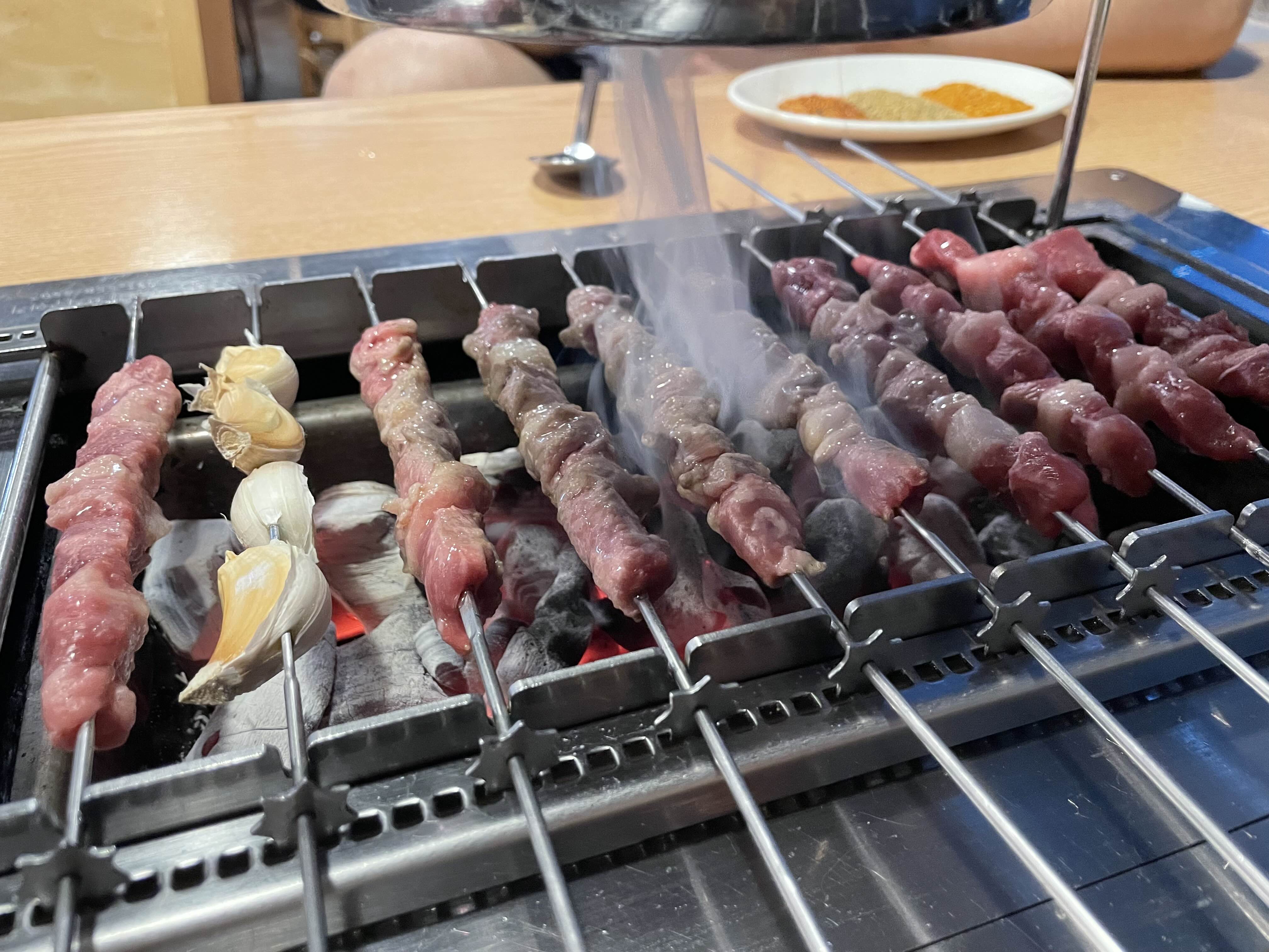 빙글 빙글 맛있게 구워지고 있는 양꼬치
