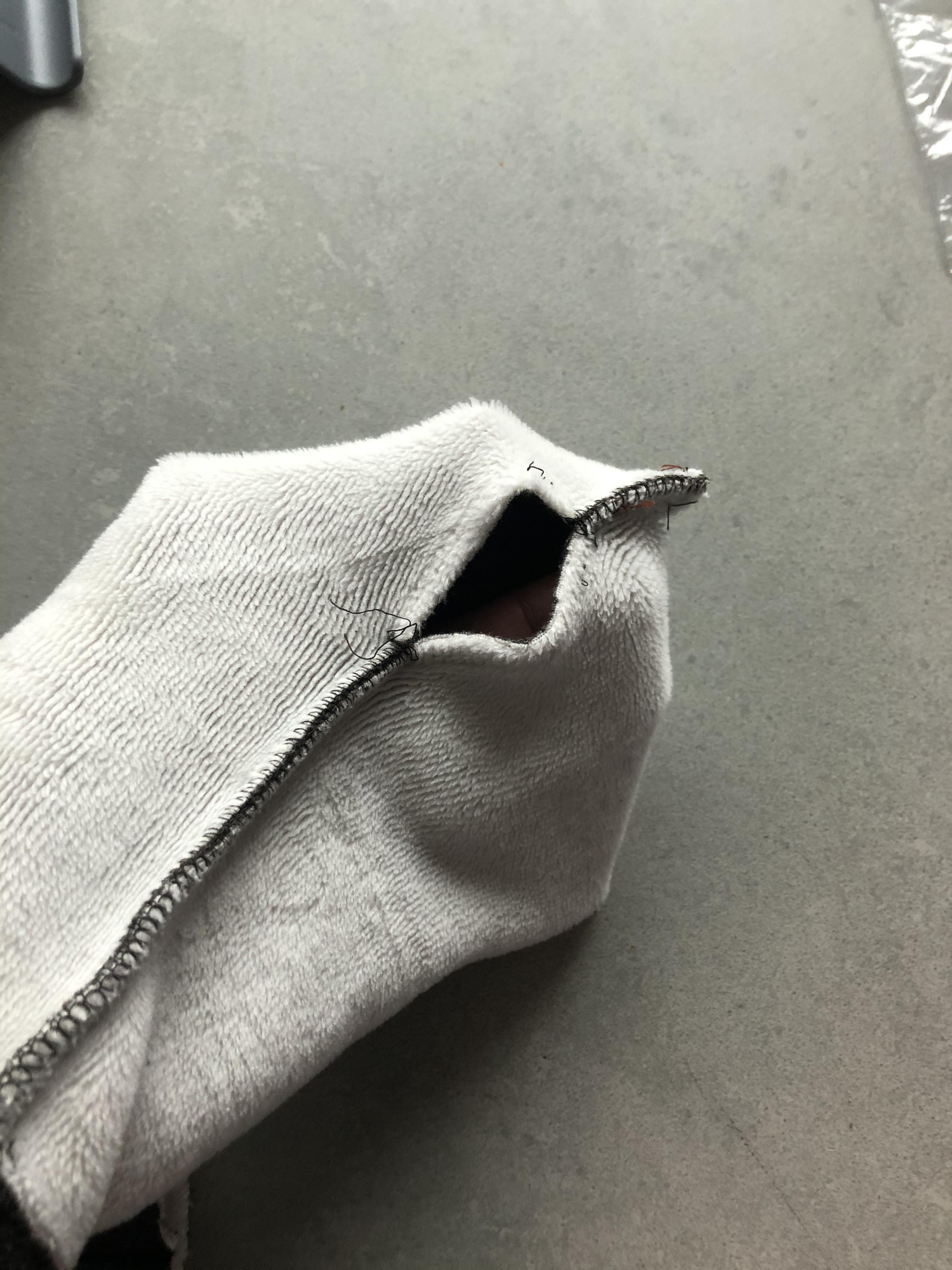2. 뒤집어서 박음질로 입구를 막아줘요.